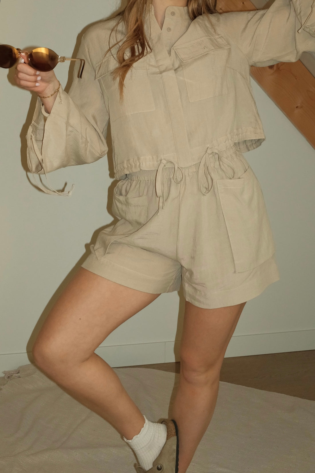 De Ravi short in een zachte beige tint is de perfecte combinatie van comfort en...