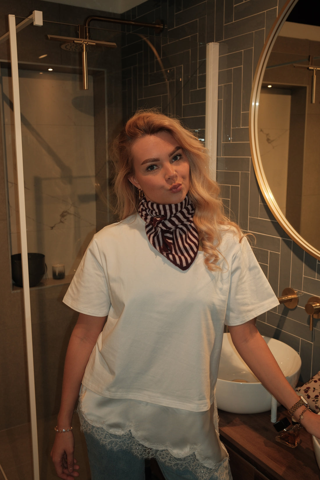 Het Sjaaltje Mello is een zachte en stijlvolle accessoire met een tijdloze gestreepte print. De...