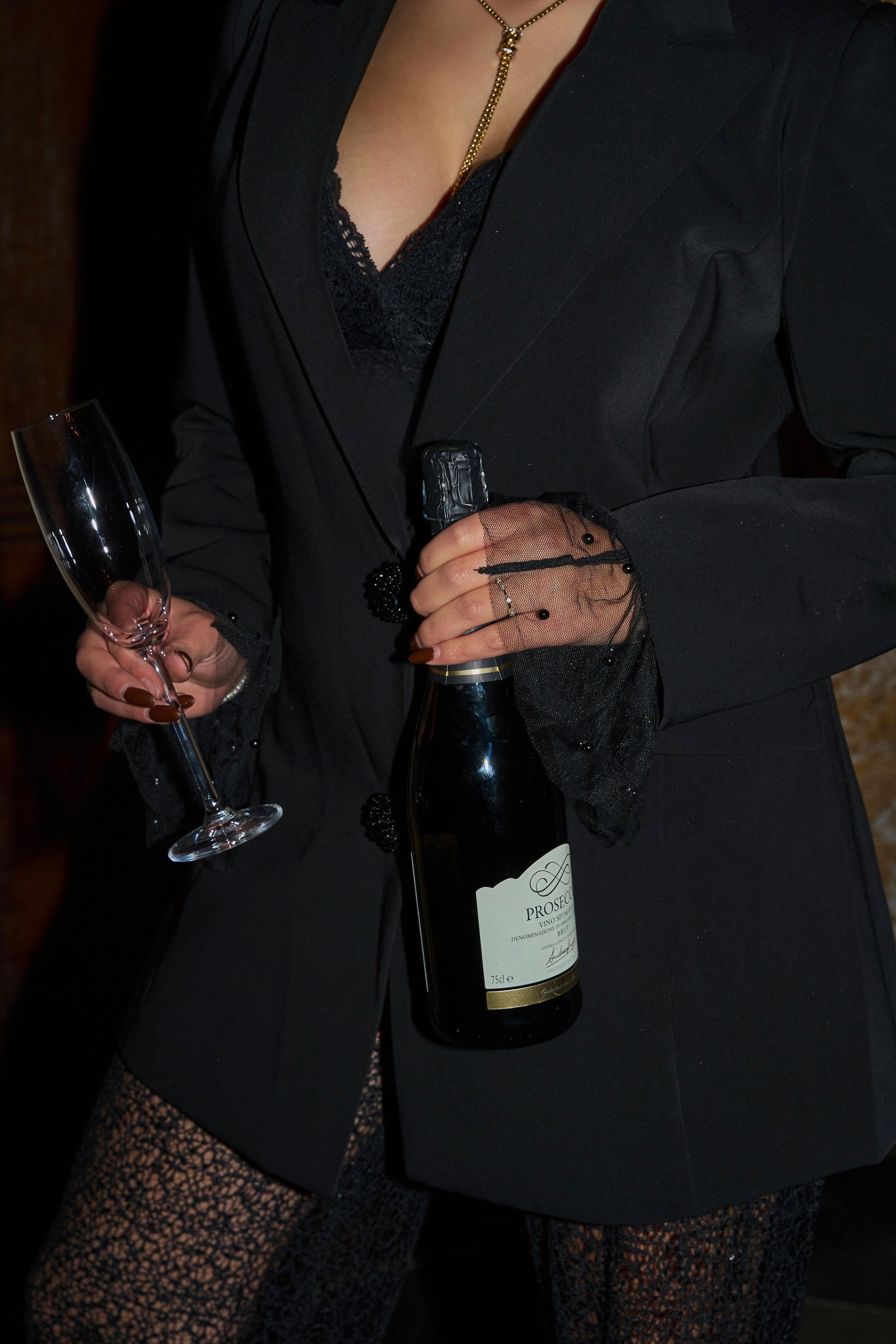 De Rive blazer zwart is een tijdloze klassieker met een moderne, vrouwelijke twist. De oversized pasvorm geeft de blazer een nonchalante, maar elegante look, terwijl de diepe V-hals en rechte schouders zorgen voor een krachtig silhouet. De subtiele glitterknoopjes voegen een vleugje glamour toe en maken de blazer perfect voor zowel een diner als een feestelijke avond.