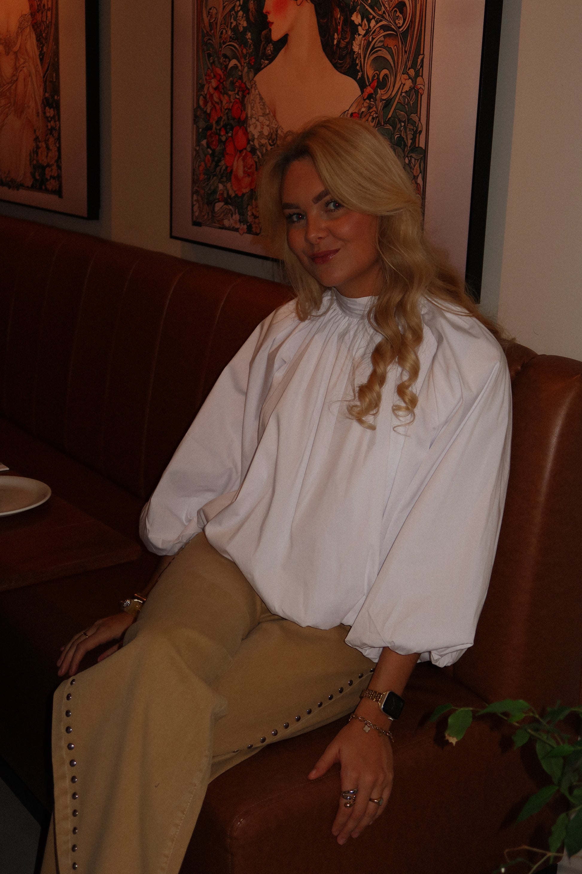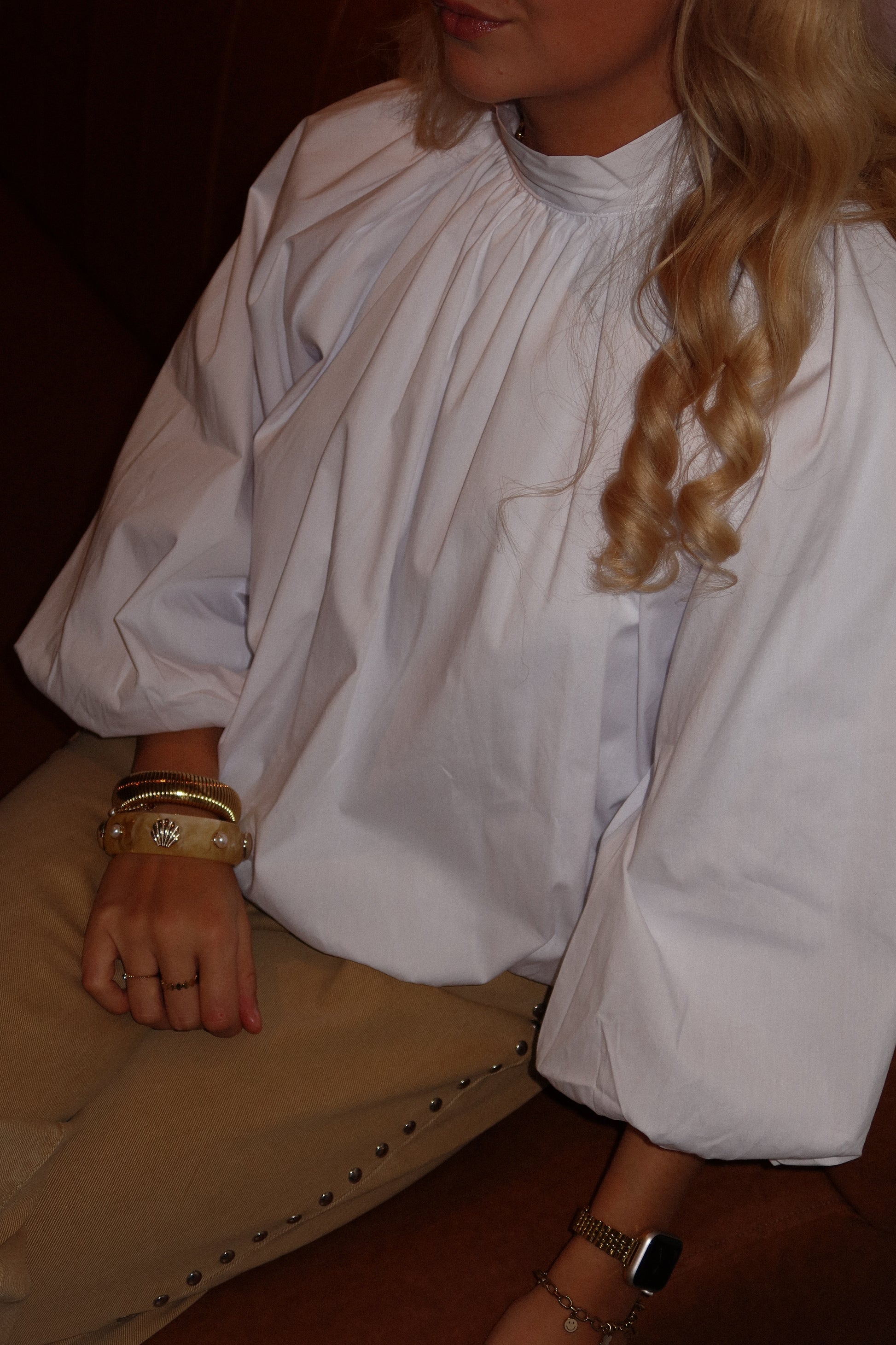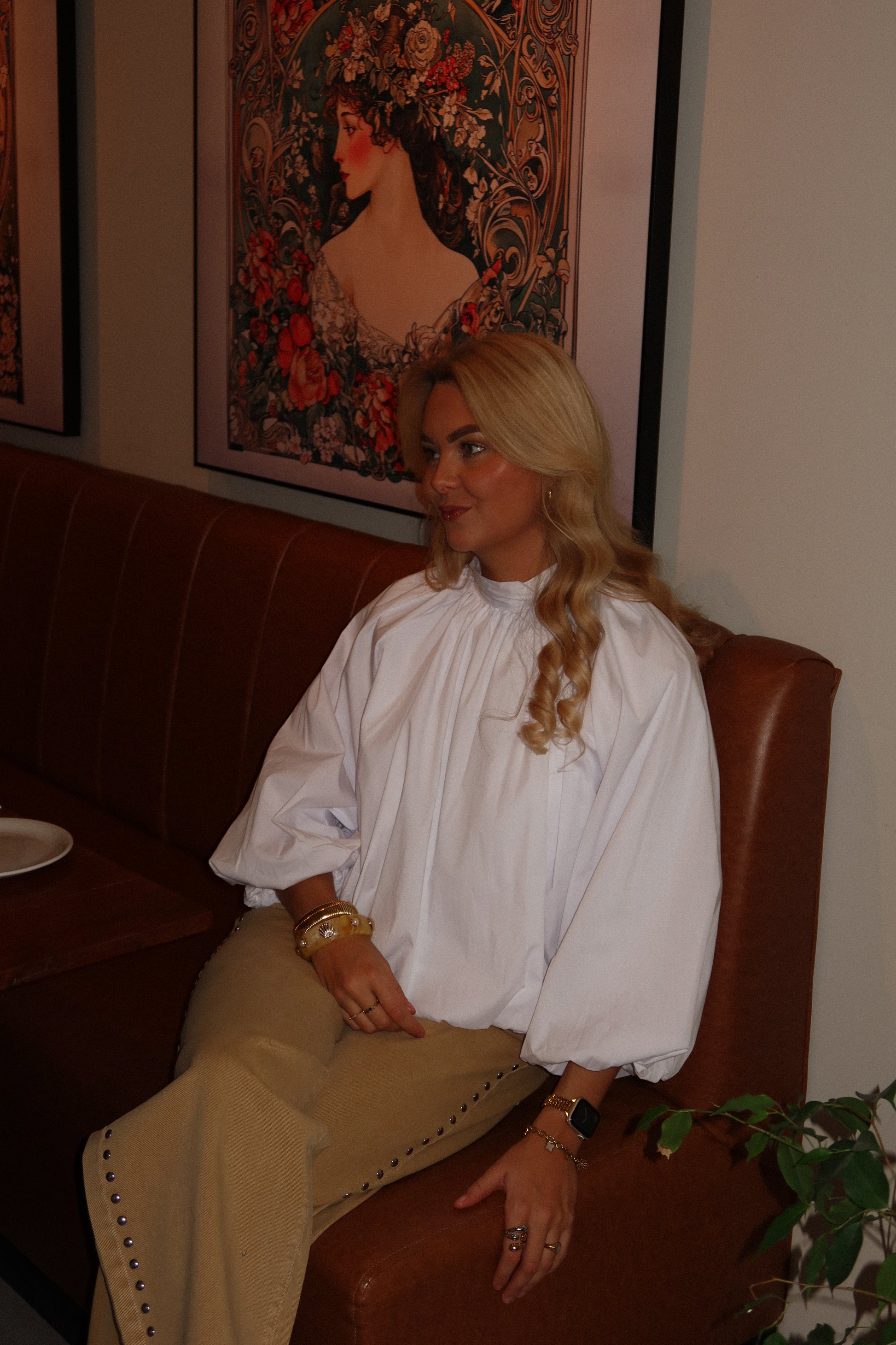De Blouse Babe is een elegante en vrouwelijke blouse met een verfijnde, romantische uitstraling. De losvallende pasvorm en zachte stof zorgen voor een luchtig en comfortabel draaggevoel, terwijl de hoge hals een chique touch geeft. De blouse heeft een openvallende rug, wat zorgt voor een sierlijk en bijzonder detail aan de achterkant. De witte kleur maakt dit item tijdloos en makkelijk te combineren. Perfect voor een stijlvolle look met een pantalon of jeans, zowel overdag als ’s avonds.