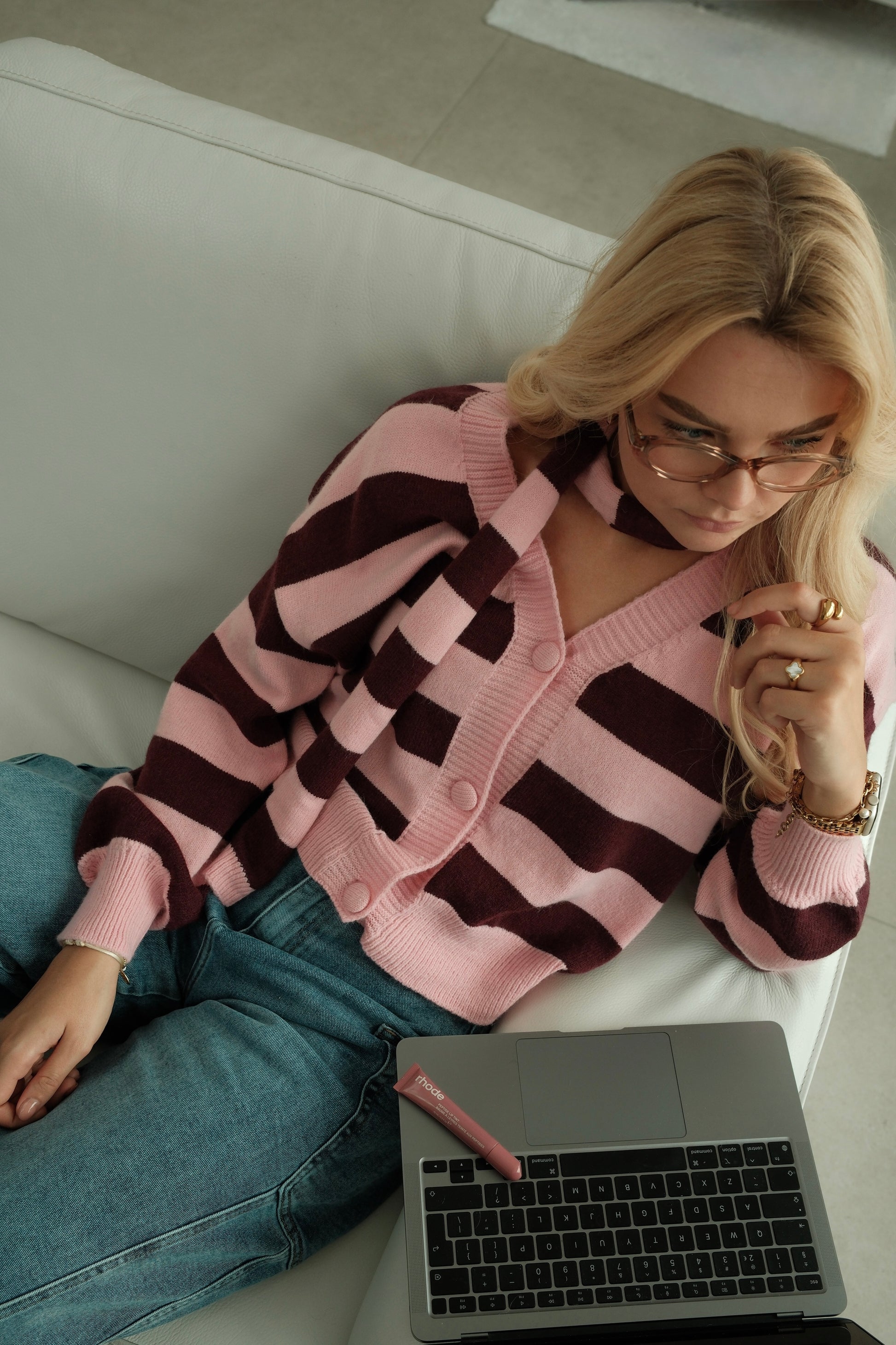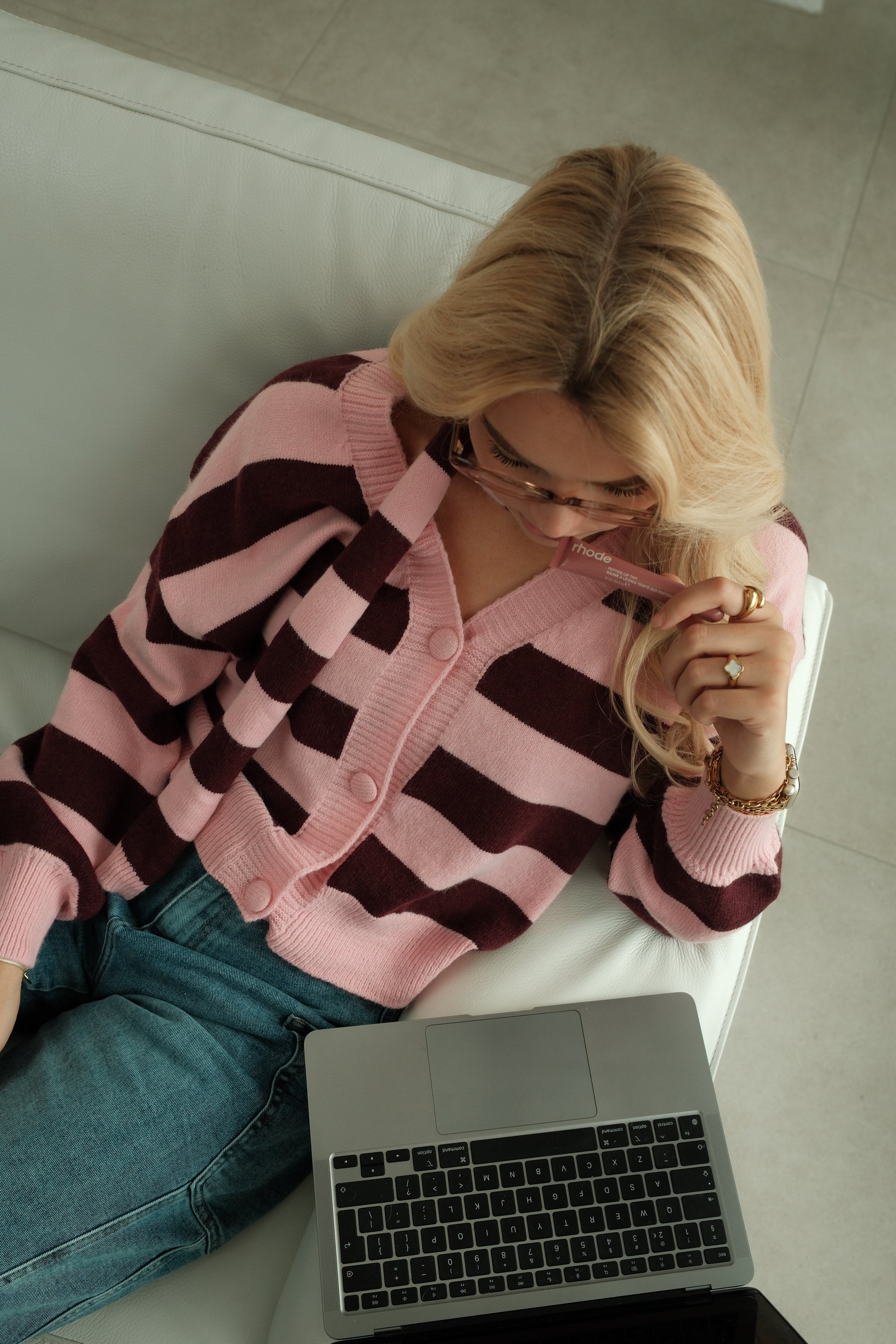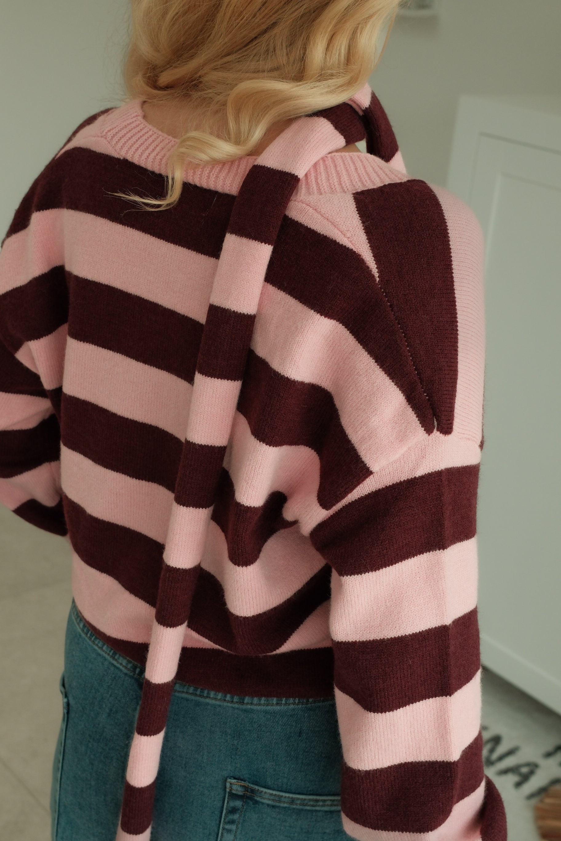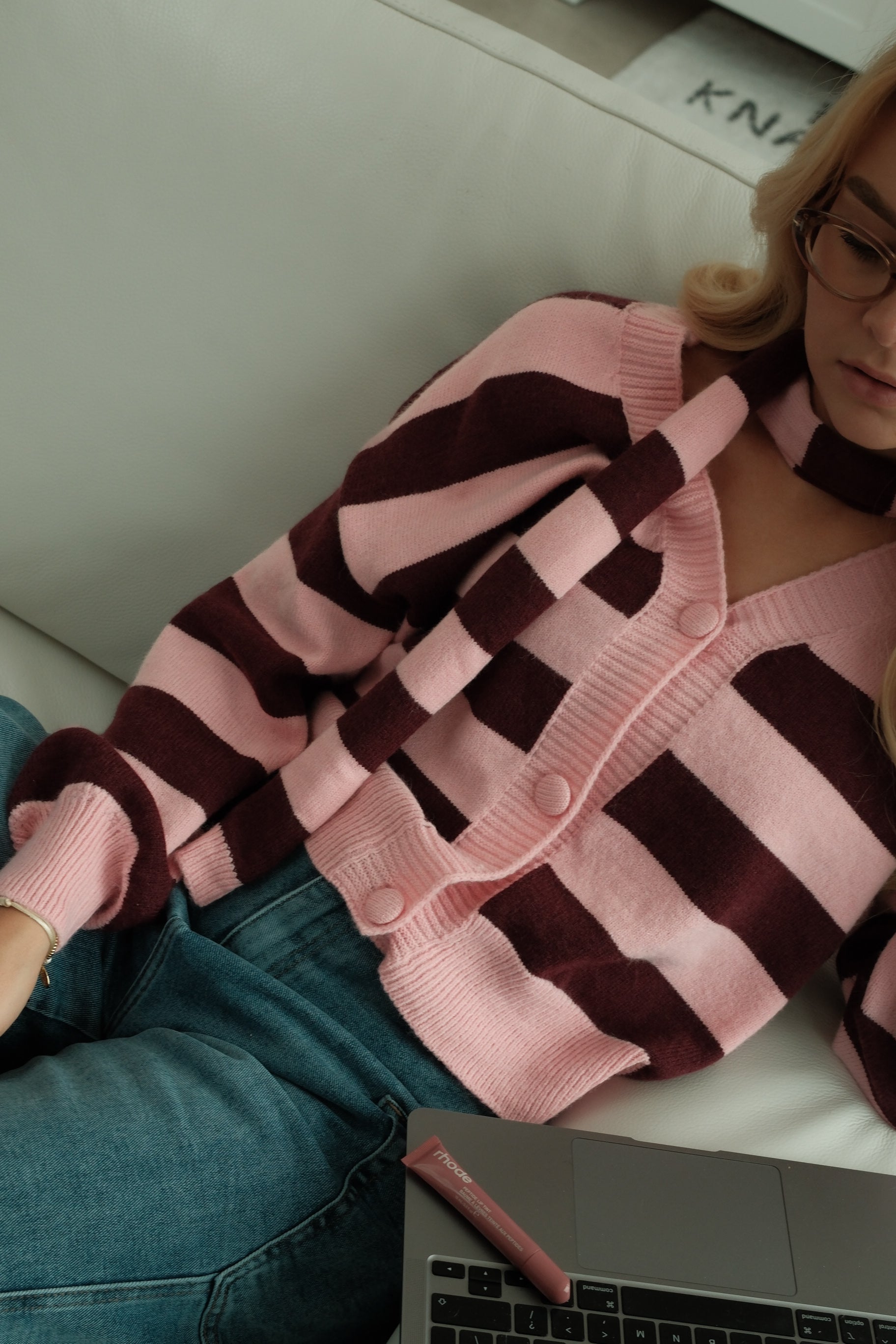 De Cardigan Knit Wave is een zachte knit met een warme, speelse uitstraling. Het golvende streeppatroon in roze en diepe bordeauxtinten geeft de cardigan een stijlvolle en moderne twist, terwijl het bijpassende losse sjaaltje zorgt voor extra warmte en veelzijdige styling. Comfortabel, vrouwelijk en perfect voor een moeiteloze everyday look.