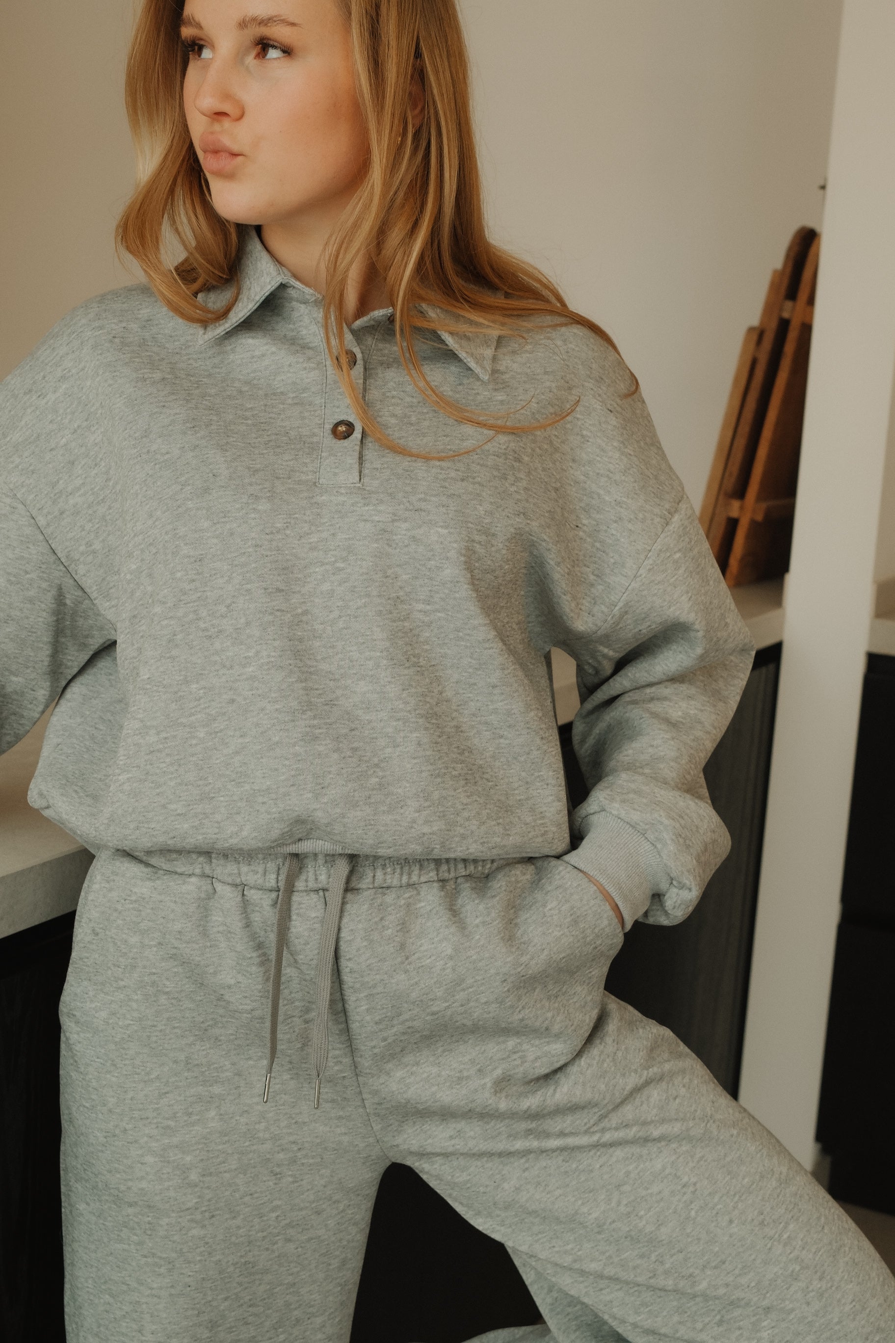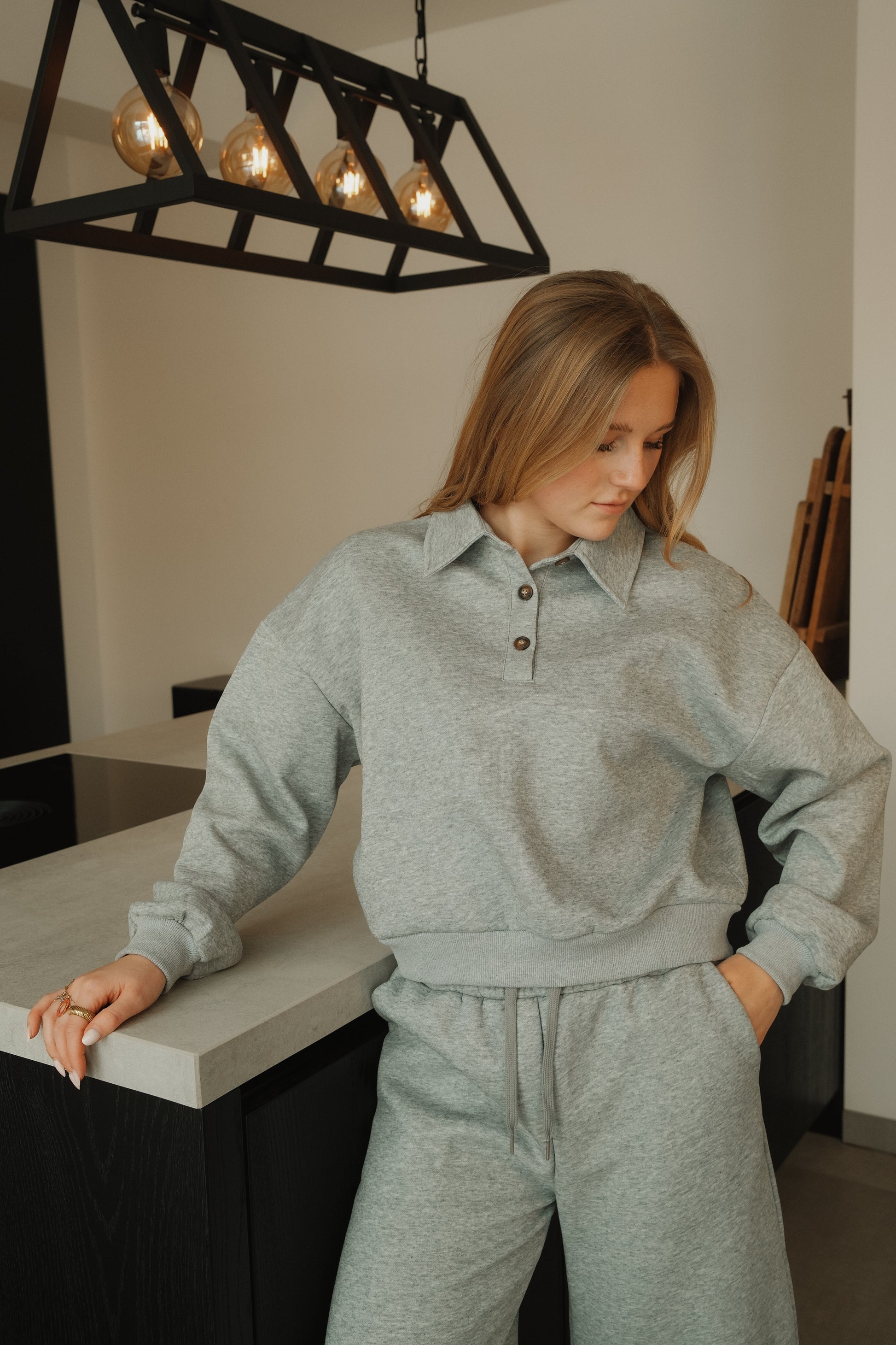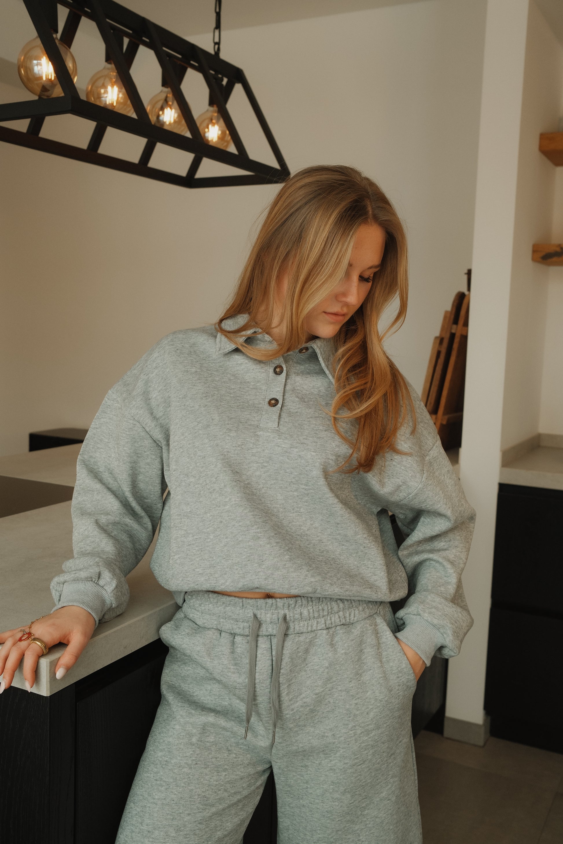 De Chill trui is een cozy essential met een sportieve touch. De opstaande kraag met knoopsluiting geeft de sweater een unieke, eigentijdse uitstraling. De comfortabele oversized fit en zachte stof maken hem ideaal voor everyday wear.