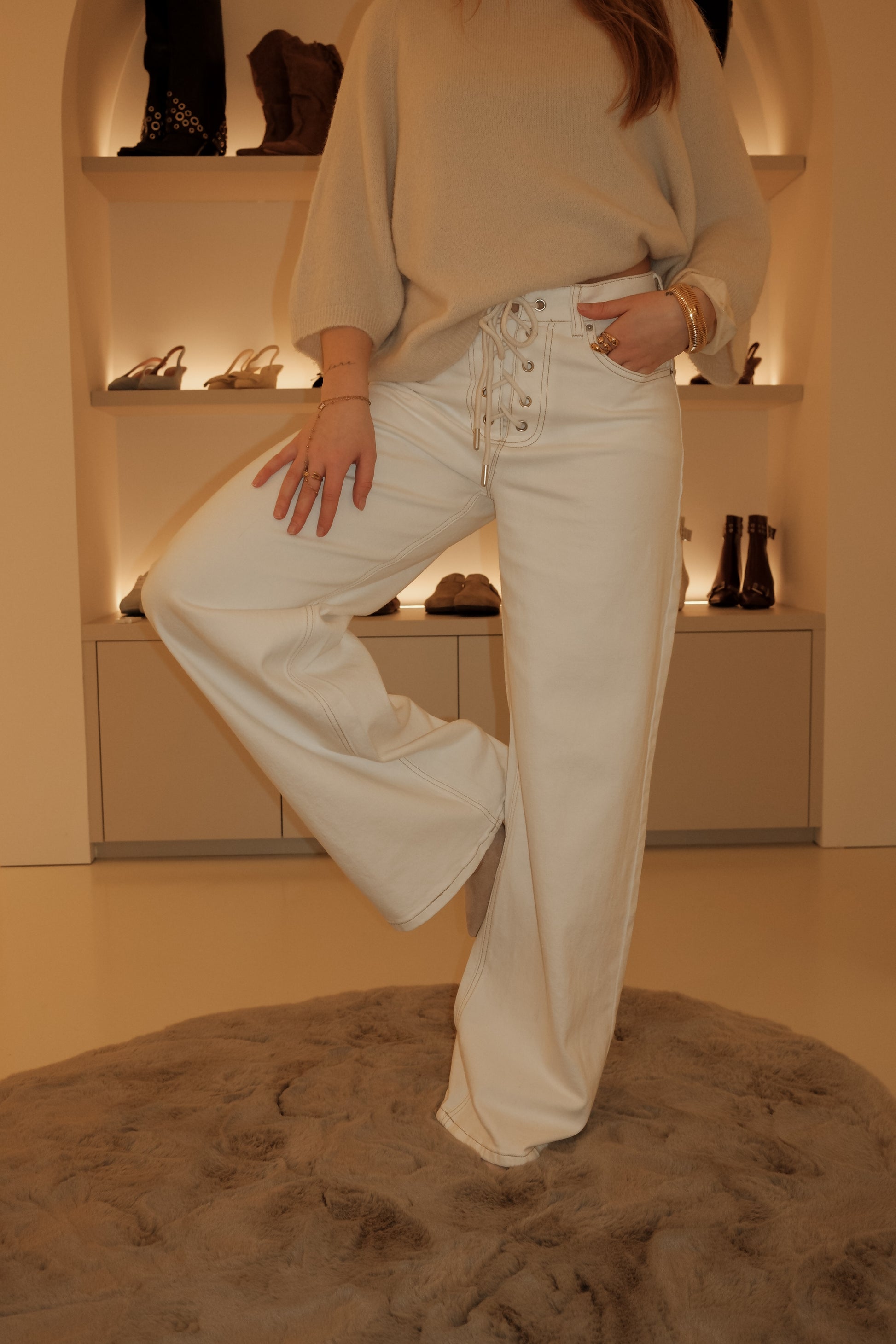 De wide leg Riva is een stijlvolle, high waist broek in een frisse off-white tint. De wijde pijpen en het veterdetail in de taille geven de broek een moderne en vrouwelijke uitstraling, terwijl de soepele stof zorgt voor een comfortabel draaggevoel. Perfect om zowel casual als chic te combineren voor een elegante, eigentijdse look.