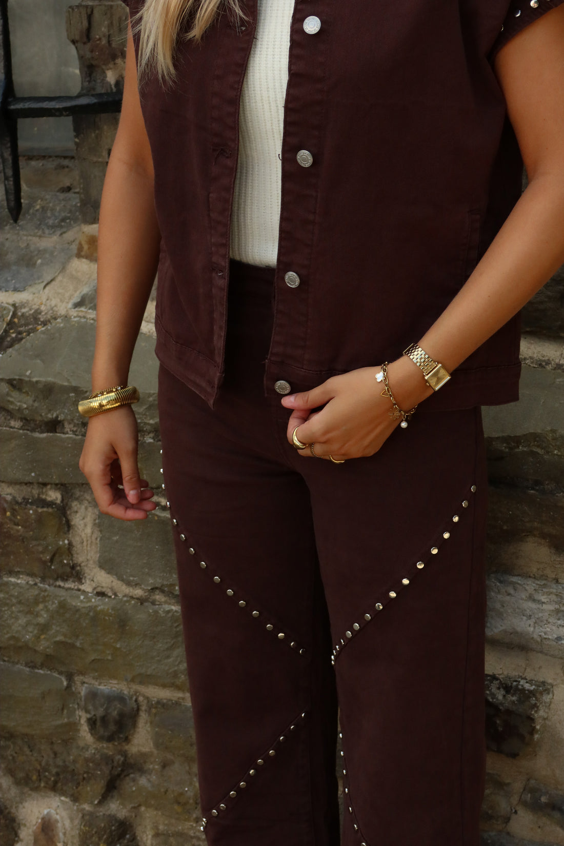 De Pantalon Lou in bruin is een elegante broek met hoge taille en subtiele plooien...