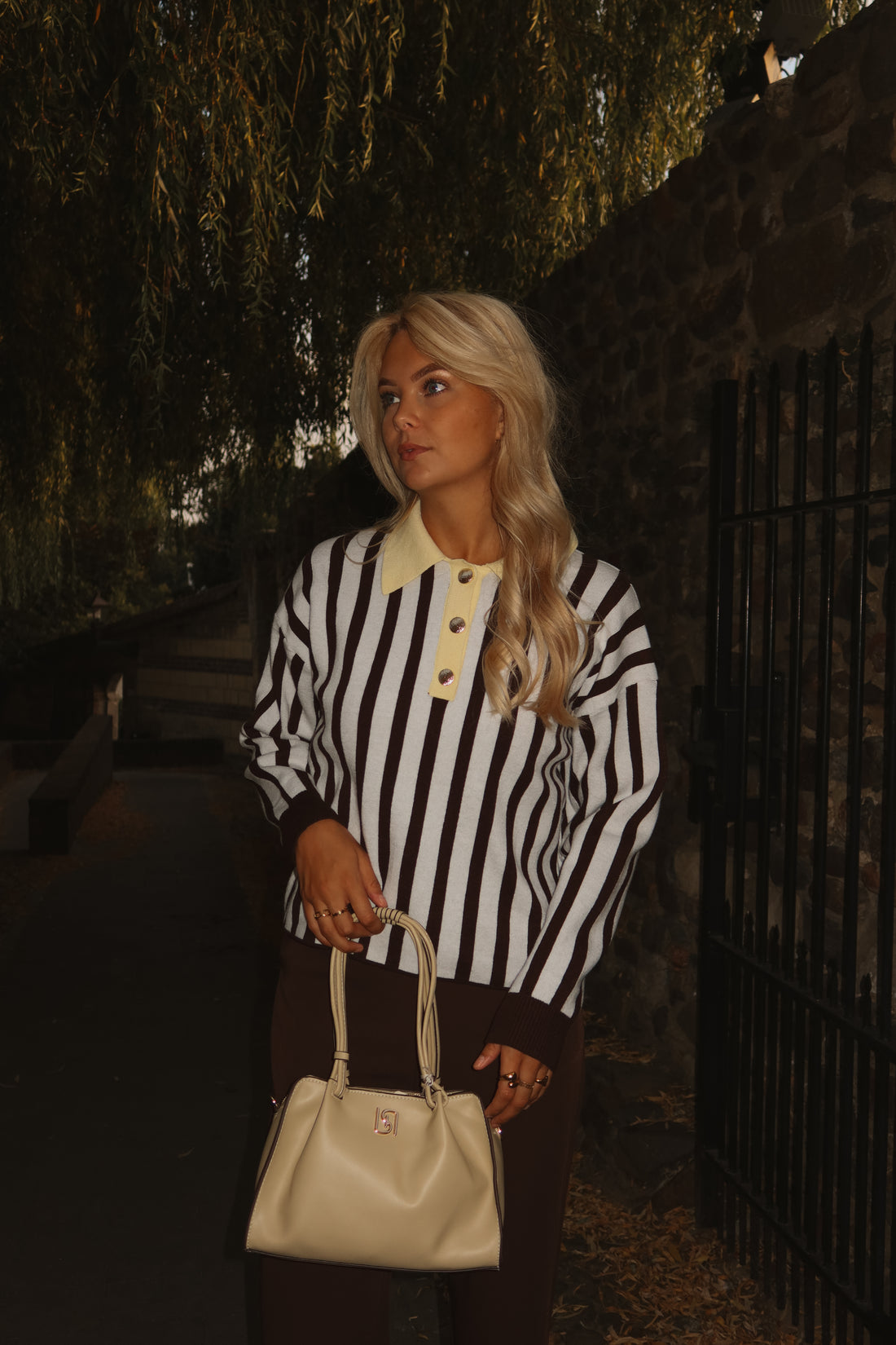 De Polo Xara in bruin is een sportieve knit met een speelse streep in bruin en...