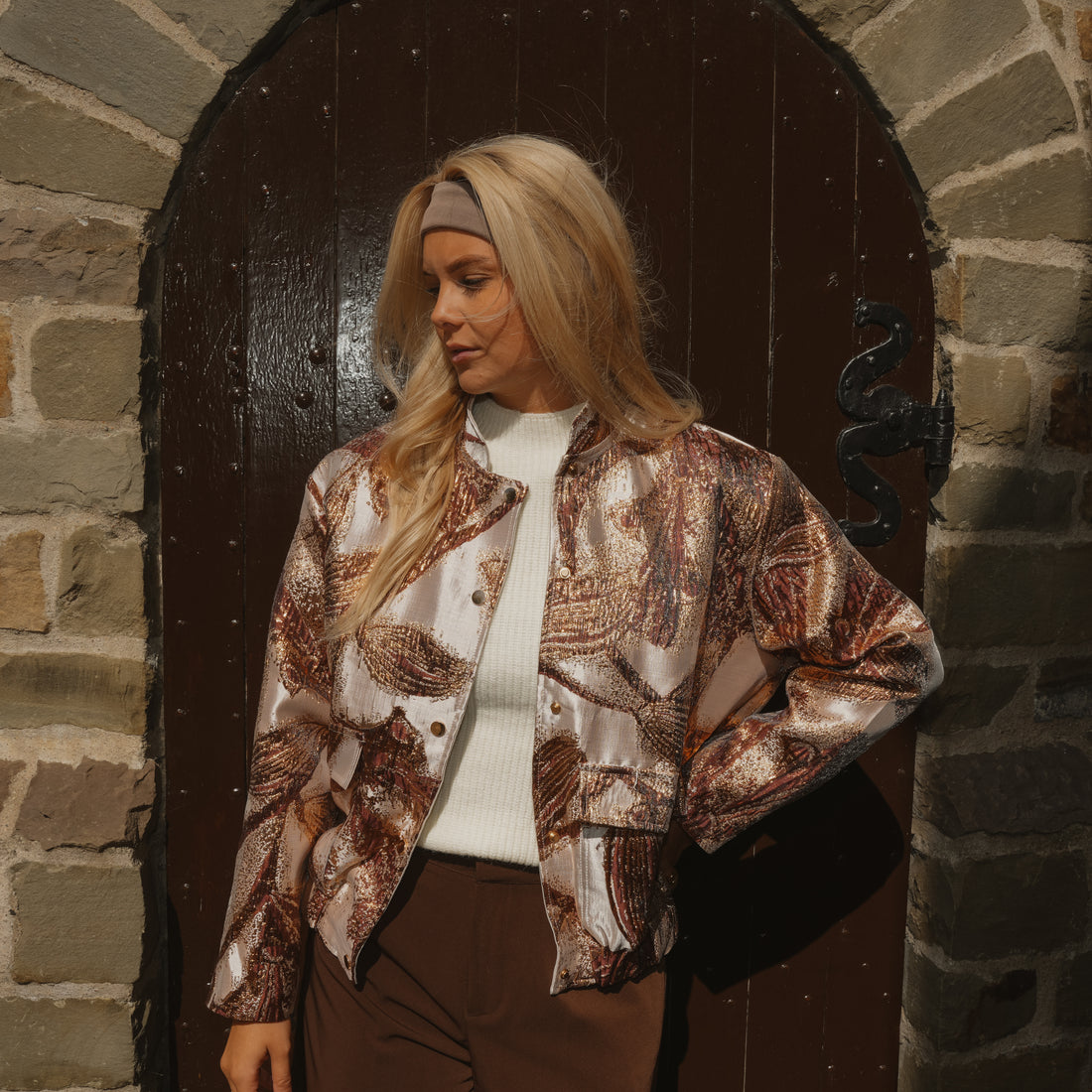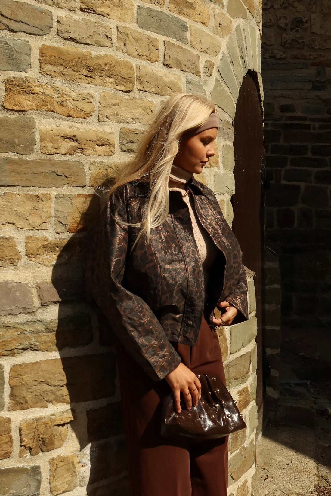 Het Jasje Vayo in bruin is een opvallend statement item met subtiele glans en een...