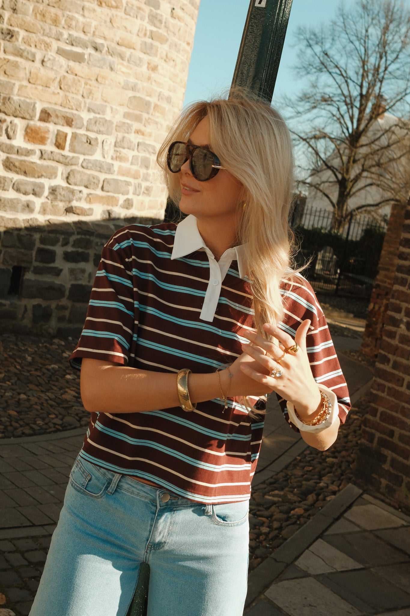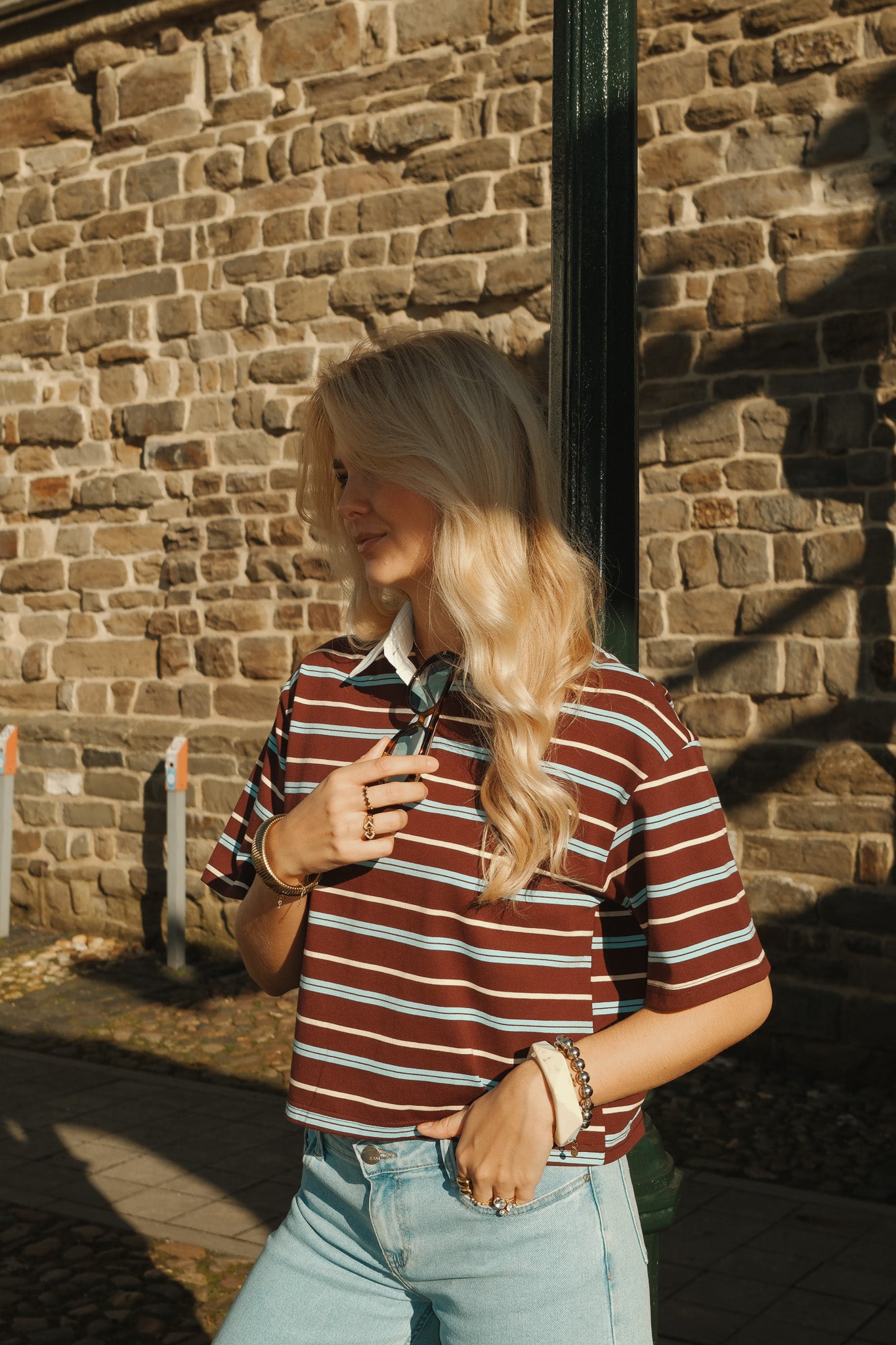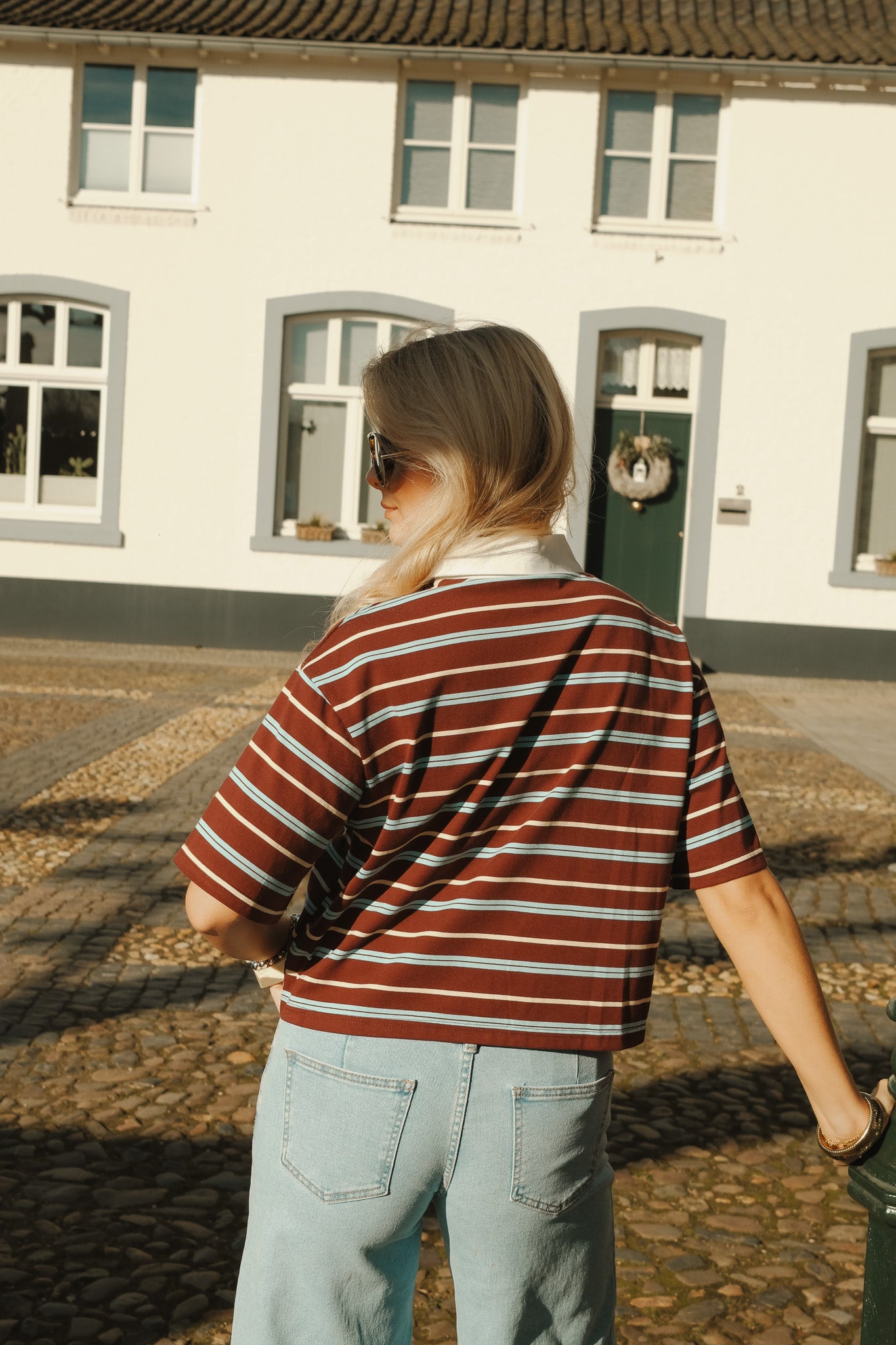 De Noa polo is een sportieve essential met een stijlvolle twist. De warme bordeaux basis met fijne witte strepen krijgt een frisse upgrade door de contrasterende witte kraag en knoopsluiting. De licht cropped fit en zachte stof zorgen voor een moderne, vrouwelijke uitstraling. Perfect te combineren met denim voor een casual look of met een nette pantalon voor een effortless chic vibe.