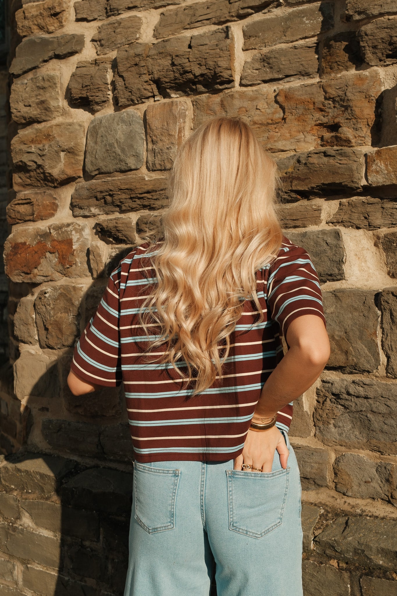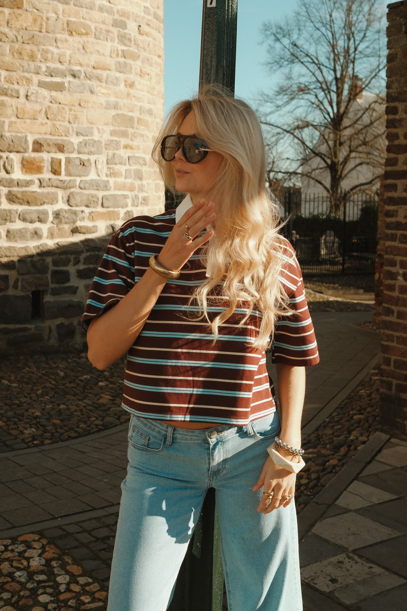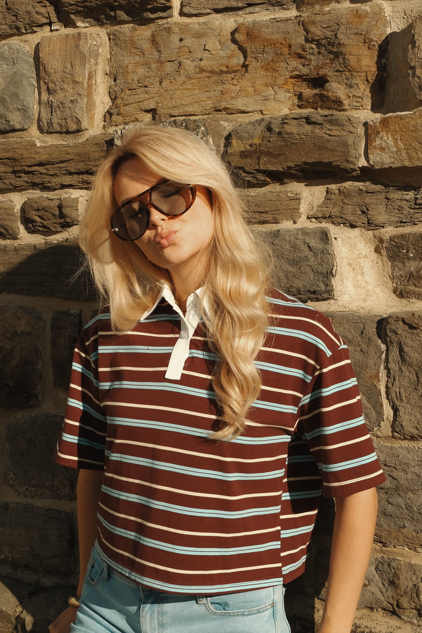 De Noa polo is een sportieve essential met een stijlvolle twist. De warme bordeaux basis met fijne witte strepen krijgt een frisse upgrade door de contrasterende witte kraag en knoopsluiting. De licht cropped fit en zachte stof zorgen voor een moderne, vrouwelijke uitstraling. Perfect te combineren met denim voor een casual look of met een nette pantalon voor een effortless chic vibe.