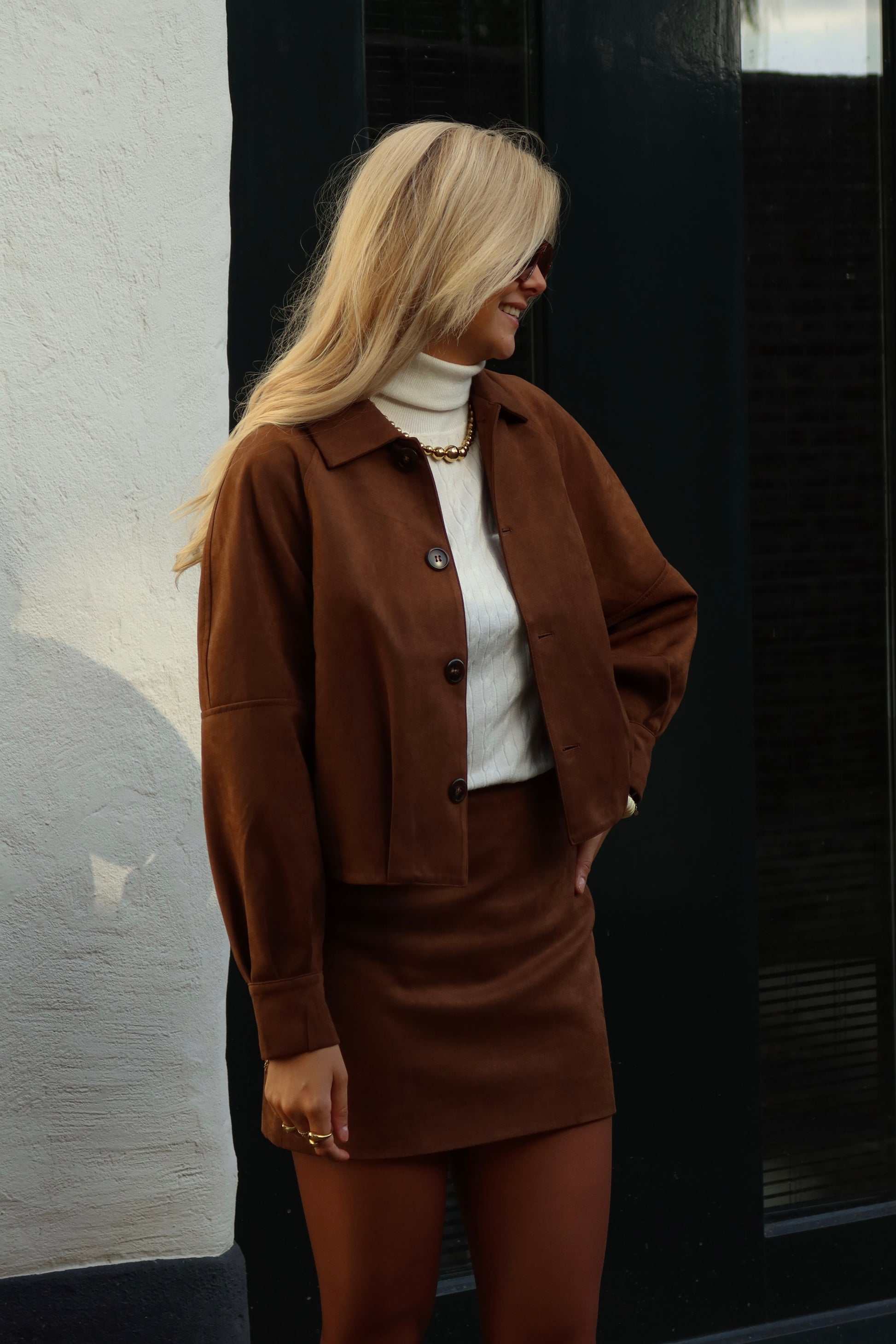 De Rok Bruin Olivia in crème is een tijdloze mini skirt met een zachte suede-look. De aangesloten pasvorm benadrukt je silhouet, terwijl de neutrale kleur zorgt voor eindeloze combinatiemogelijkheden. Draag hem chic met een blouse of casual met een knit voor een veelzijdige look die altijd stijlvol is.
