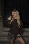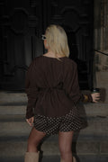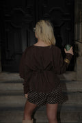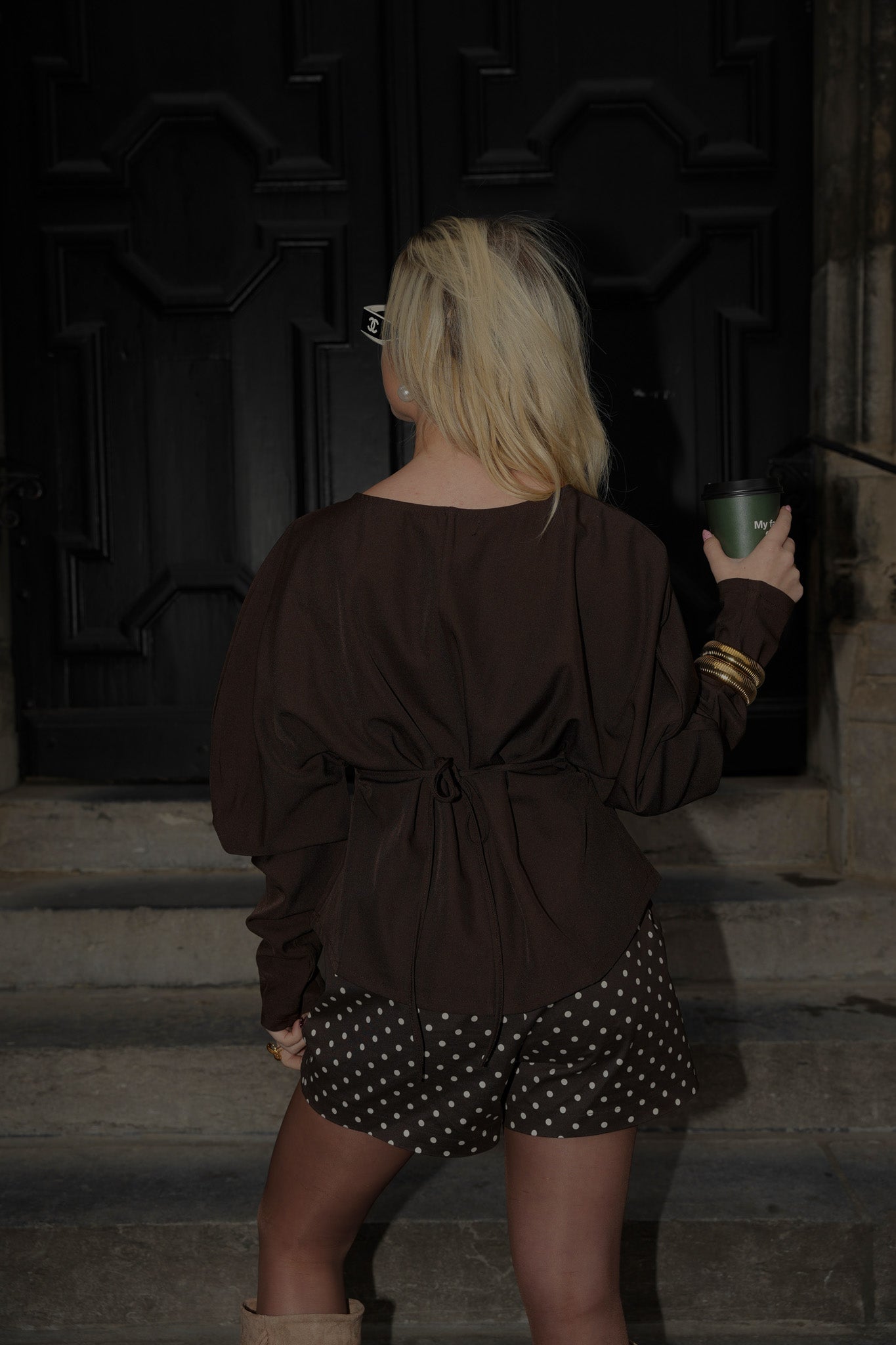De Top Noor in bruin is een elegante top die moeiteloos vrouwelijkheid en verfijning uitstraalt. Het subtiel getailleerde model met lange, licht bloezende mouwen creëert een sierlijk silhouet, terwijl de verticale lijnen en naden voor een flatterend effect zorgen. De striksluiting achterin voegt een speels detail toe en geeft je de mogelijkheid de pasvorm naar wens aan te passen.