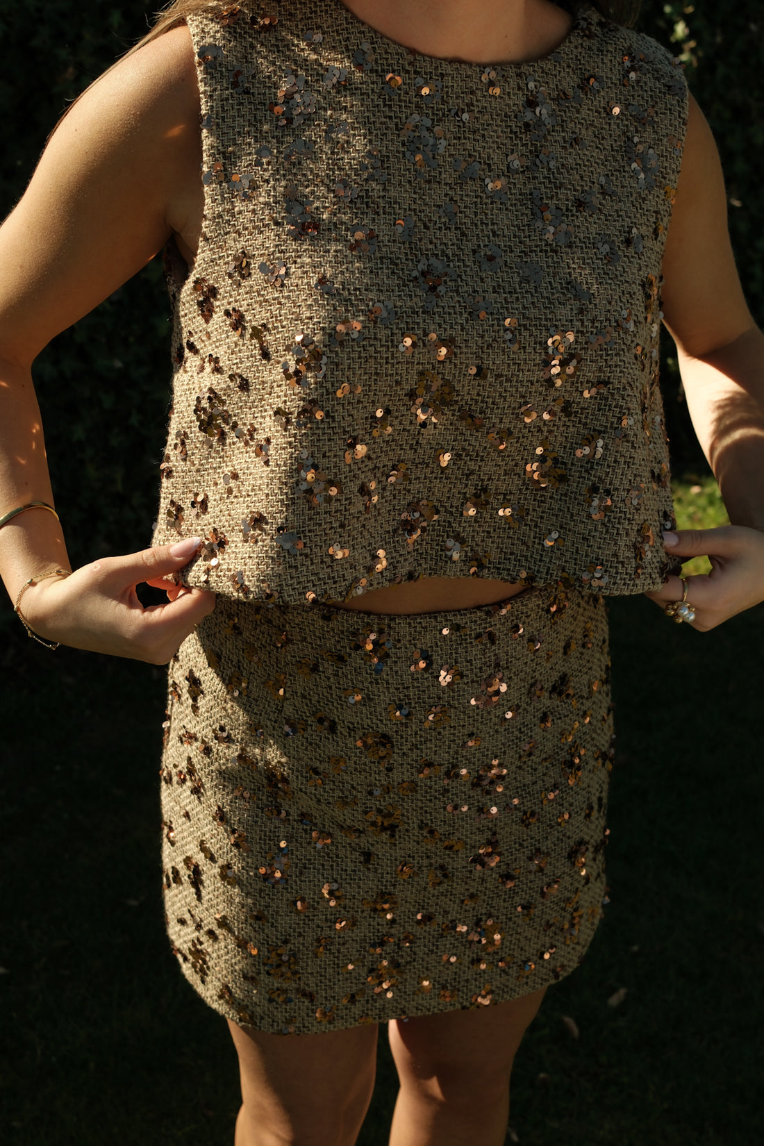 De Savi skirt beige is een feestelijke minirok met subtiele glitterdetails die direct een luxe...