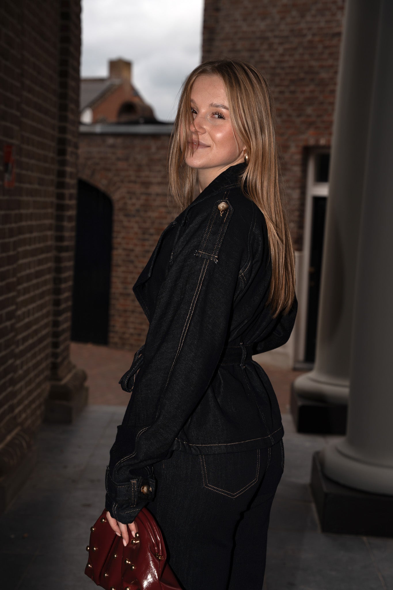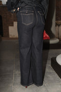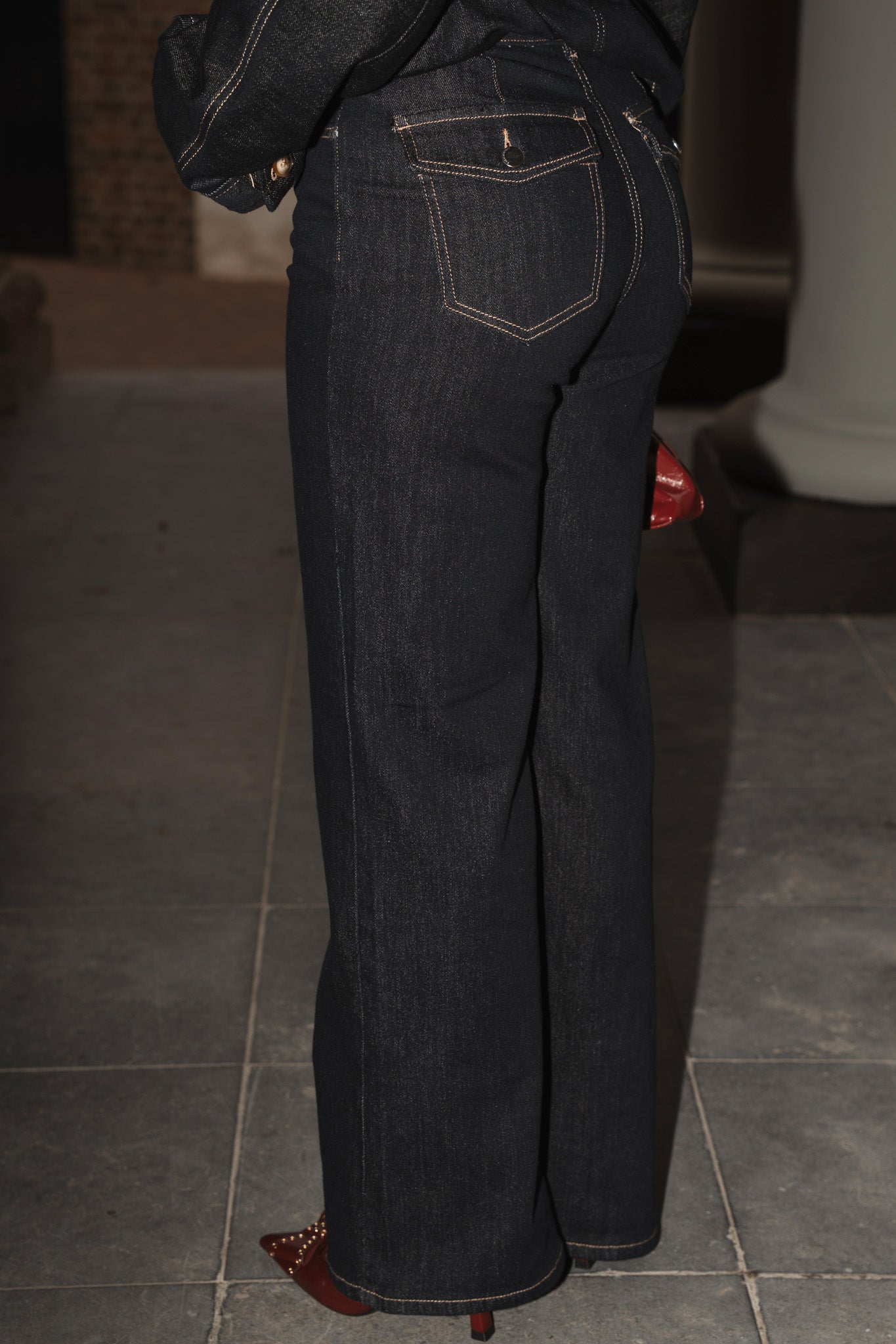 De Dream jeans is een moderne klassieker met een flatterende, high-waisted fit en een subtiele flair. Gemaakt van stevig, diep indigo denim met contrasterende stiksels, vormt deze jeans een perfecte balans tussen structuur en comfort. De rechte, iets wijder uitlopende pijp verlengt optisch het silhouet, terwijl de nauwsluitende taille zorgt voor een elegante vorm. Combineer met de bijpassende denim top voor een gecoördineerde, tijdloze look