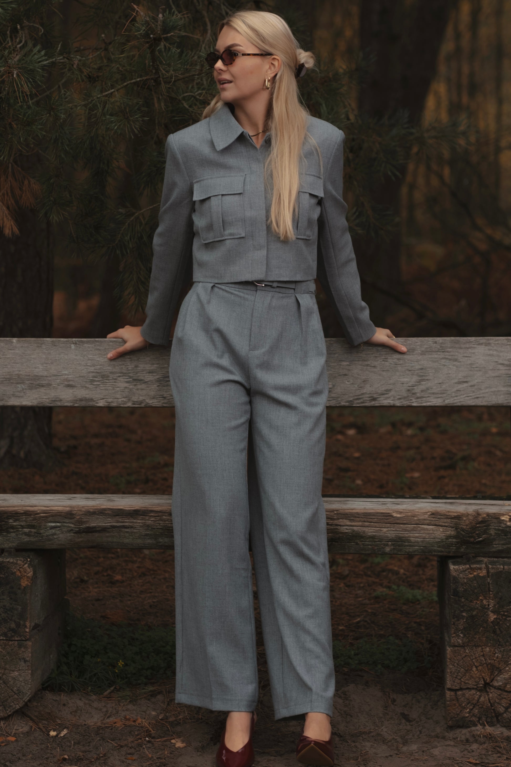 This elegant Nova Pants in gray combines style and comfort in a refined way. The pants have a timeless appearance with its subtle pleats at the front and wide legs, creating a modern yet classic look. The matching belt accentuates the waist and gives the trousers a nice, finished look. The soft gray shade makes these pants ideal for both formal and casual occasions.
