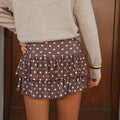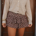 De Skort Zia in bruin is een speelse en vrouwelijke short met een polkadotprint. De dubbele ruffle-laag geeft een zwierige look, terwijl de comfortabele tailleband zorgt voor een mooie pasvorm. Ideaal om casual en toch stijlvol te dragen.