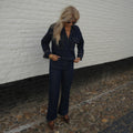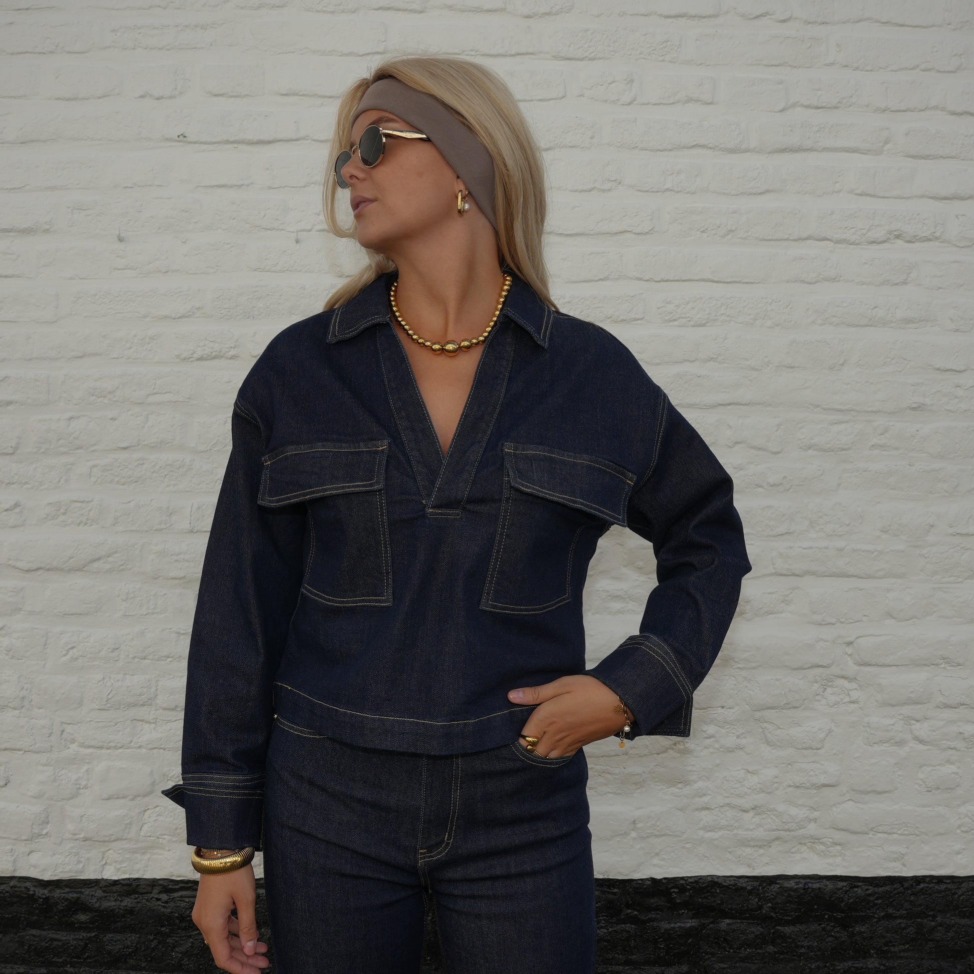 De Spijker blouse Faye in denim blauw heeft een stoere uitstraling met een vrouwelijke touch. Het model is afgewerkt met een diepe V-hals en opvallende borstzakken, terwijl de stevige denim zorgt voor een tijdloze look. Perfect te dragen als set met de bijpassende broek of los op een basic.