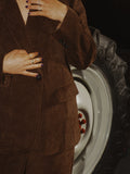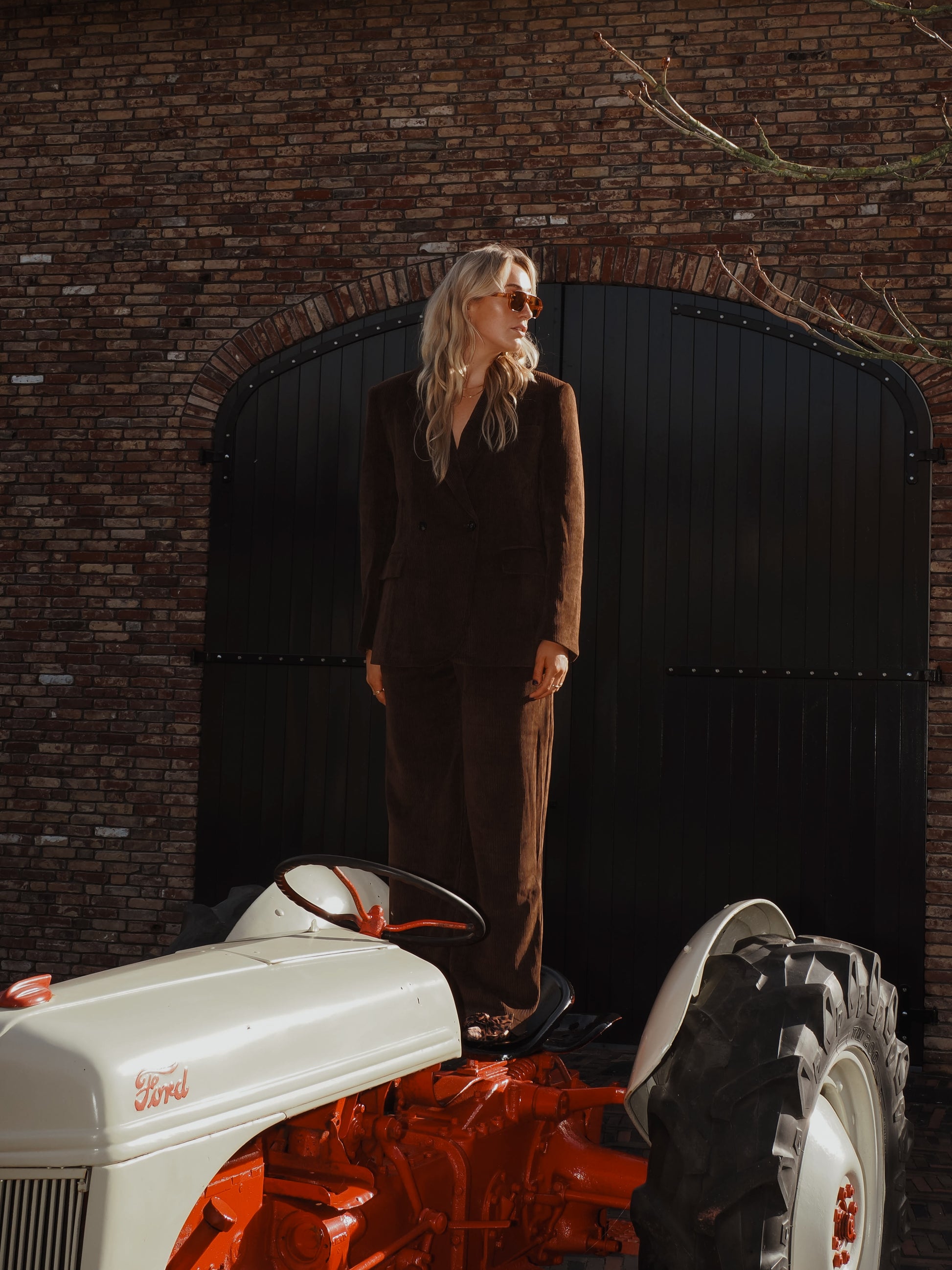 De Olex blazer bruin tijdloze corduroy blazer in een warme, diepe bruine tint. De dubbele knoopsluiting en klassieke revers geven het jasje een elegante, vintage look. Combineer met de bijpassende pantalon voor een sophisticated co-ord set, of draag los over een knit of blouse voor een stijlvolle, nonchalante outfit.