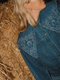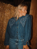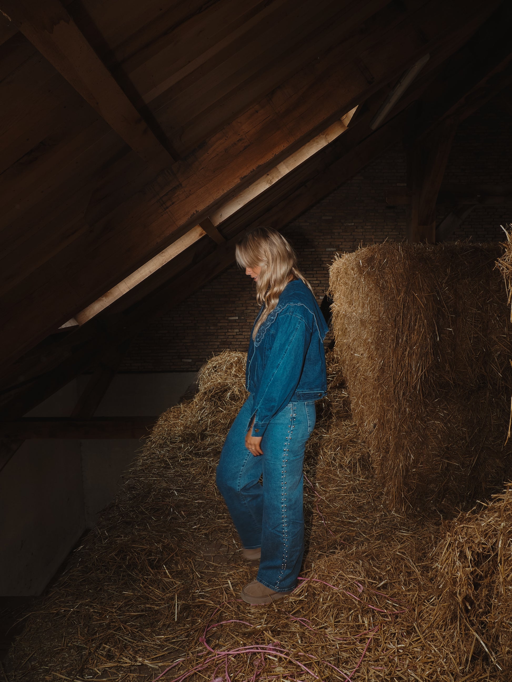 De Juli blouse blauw denim blouse met een opvallende, geborduurde kraag die zorgt voor een vrouwelijke en unieke look. De stof voelt stevig maar comfortabel aan, perfect voor laagjes of als statement item op zich. Combineer de Juli blouse met een rok of jeans voor een casual-chique uitstraling.