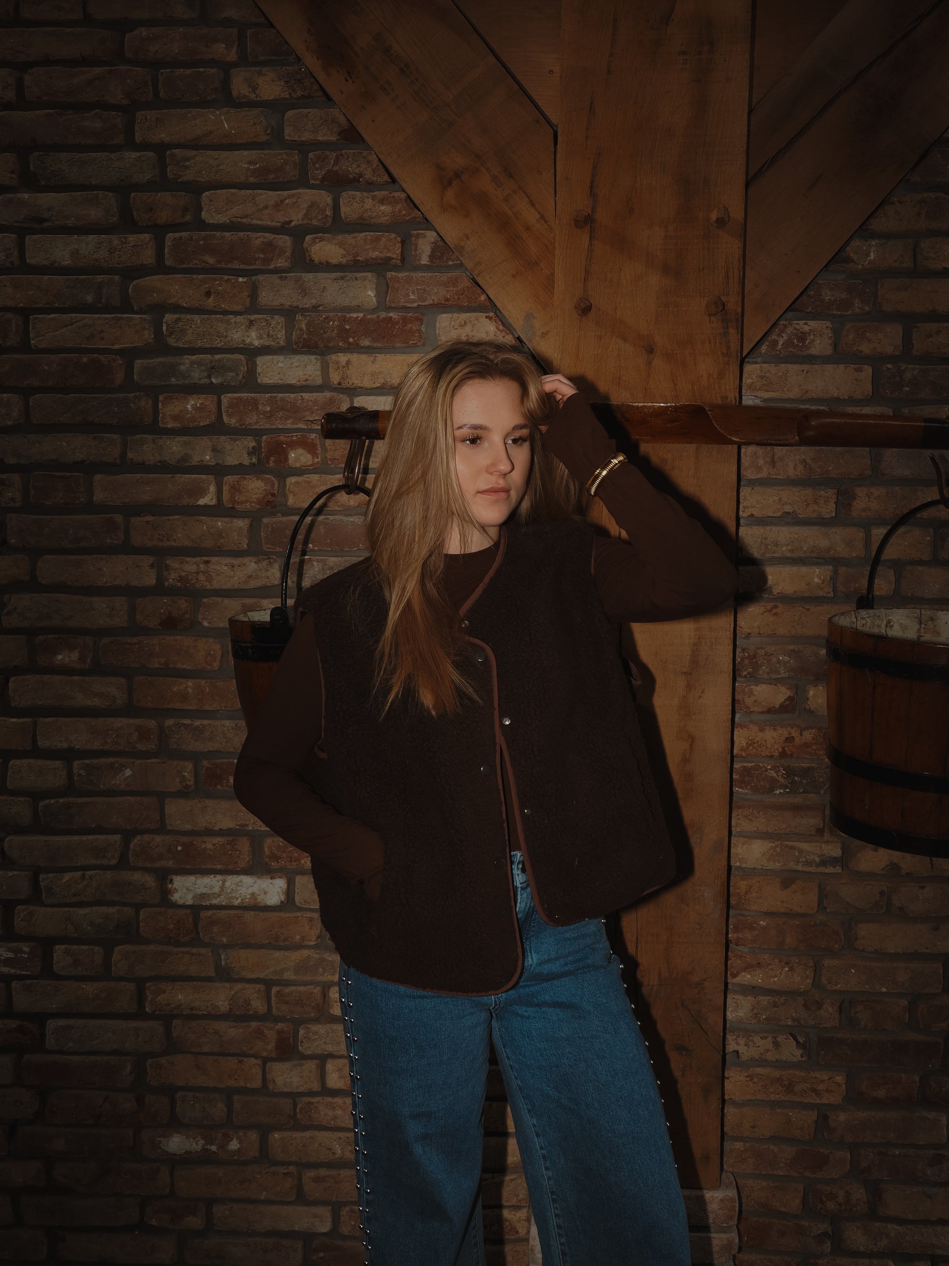 De Avor gilet bruin heerlijk zacht teddy gilet in een warme, donkerbruine tint. De relaxte pasvorm en opgestikte zakken maken het een comfortabel en stijlvol laagje voor over truien of blouses. Een echte musthave voor een cozy, casual herfstlook.