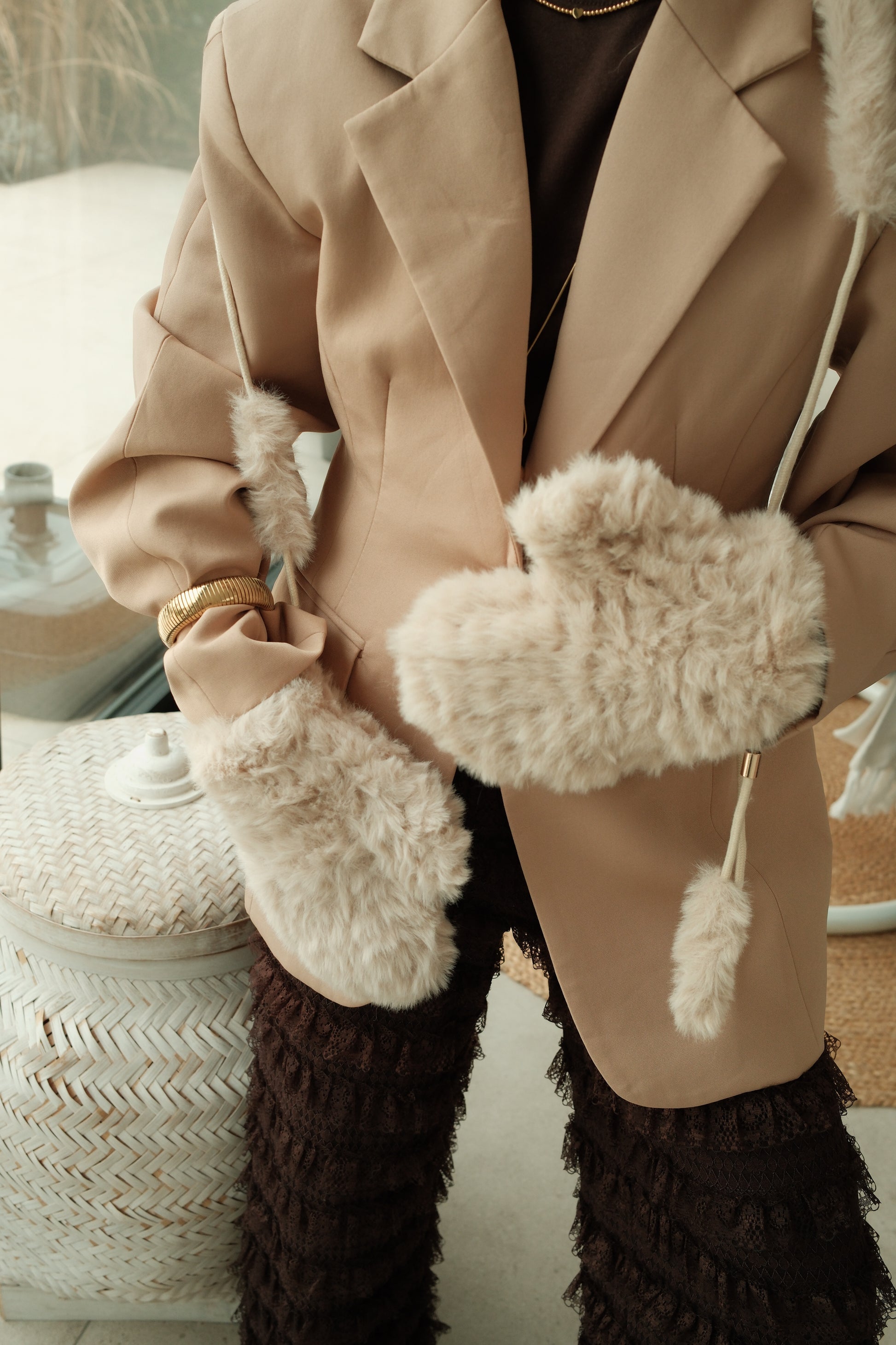 De Handschoenen Loft Beige combineren comfort met een moderne elegantie. Het zachte, luxueuze materiaal voelt aangenaam aan en houdt je handen heerlijk warm tijdens koude dagen. De subtiele fluffy afwerking en het verfijnde design geven deze handschoenen een stijlvolle, eigentijdse uitstraling. De lichte beige tint zorgt voor een frisse en tijdloze look die moeiteloos past bij elke winteroutfit. Een elegante essential die warmte en stijl perfect samenbrengt.