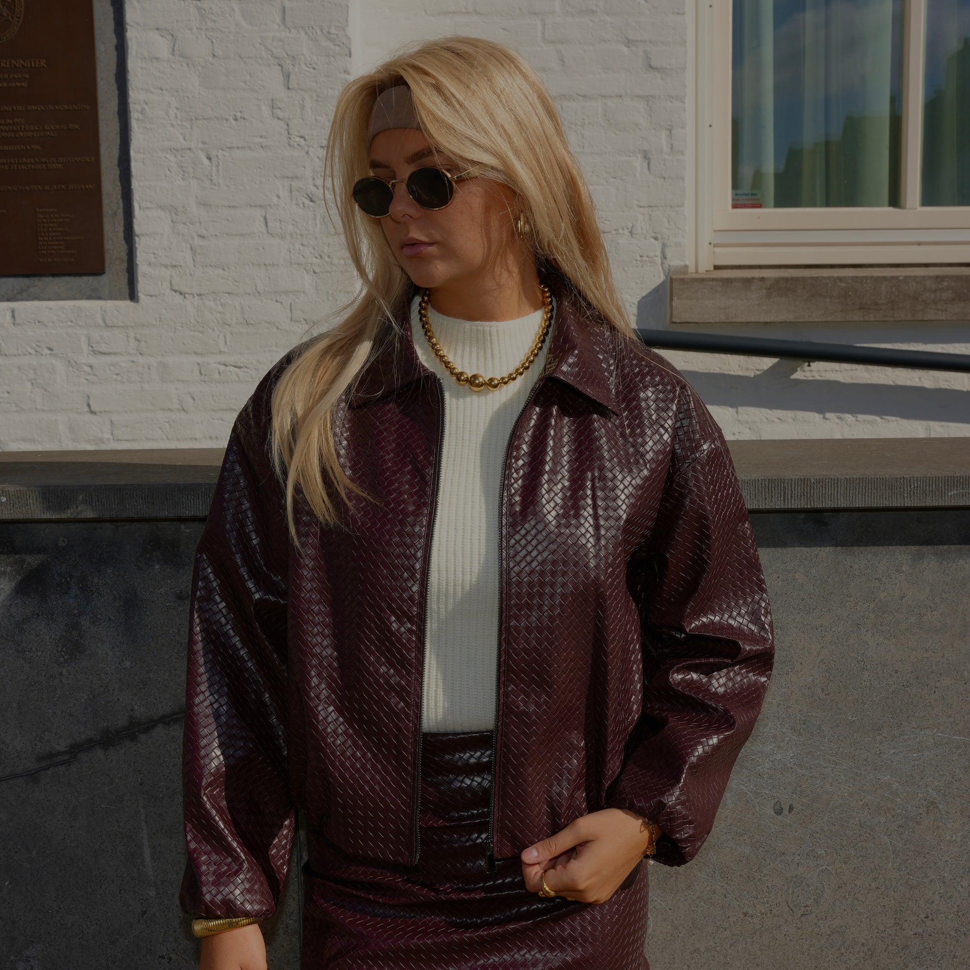 Het Jasje Lavi in bordeaux is een stijlvolle eyecatcher met een luxe Bottega Veneta-patroon. De glanzende finish en rechte, losse pasvorm geven het jasje een moderne uitstraling, terwijl de ballonmouwen zorgen voor een speelse touch. Draag het chic als set met de bijpassende rok of casual over een basic outfit voor een modieuze look.