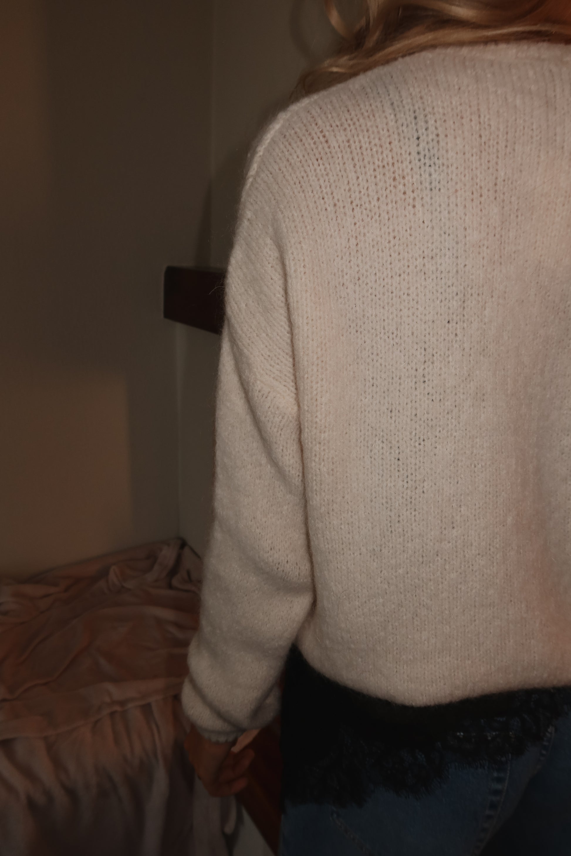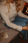 De Knit Lumi is het ultieme cozy item voor de koudere dagen. Deze zachte knit in warme crèmekleur voelt luchtig, comfortabel en luxe aan. De rechte pasvorm met ronde hals en elegante knoopsluiting maakt Lumi tijdloos en veelzijdig. Draag haar open met een kanten top eronder voor een vrouwelijke touch, of dicht voor een klassieke, minimal look. Perfect te combineren met denim of lichte tinten voor een frisse, stijlvolle outfit.