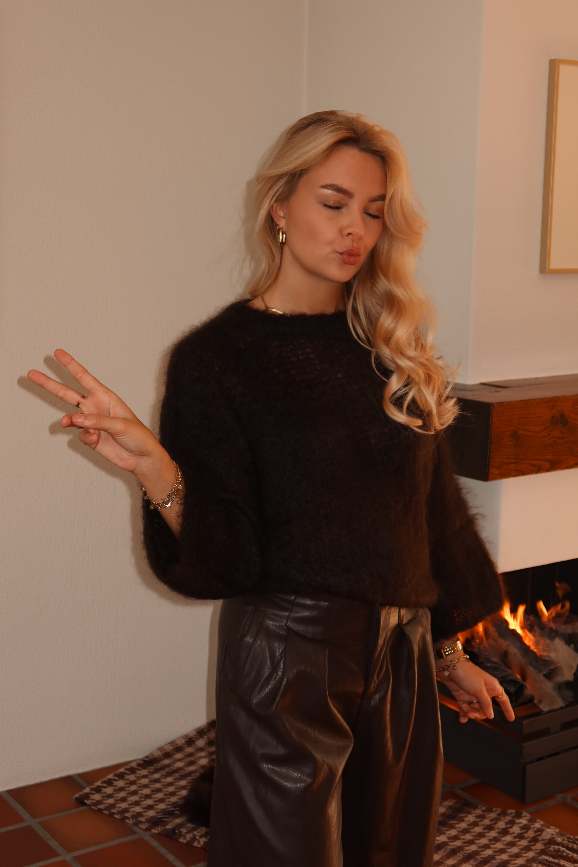 De Knit Ruby is de perfecte mix van cozy en chic. De zachte, donzige wolblend voelt heerlijk warm aan en geeft de knit een luxe uitstraling. De relaxte pasvorm en wijdere mouwen zorgen voor een nonchalante, moderne look. De diepe bruine kleur maakt Ruby eindeloos combineerbaar van een leren broek tot een vrouwelijke rok. Een knit die comfort en stijl moeiteloos samenbrengt, ideaal voor koude dagen met een fashionable twist.