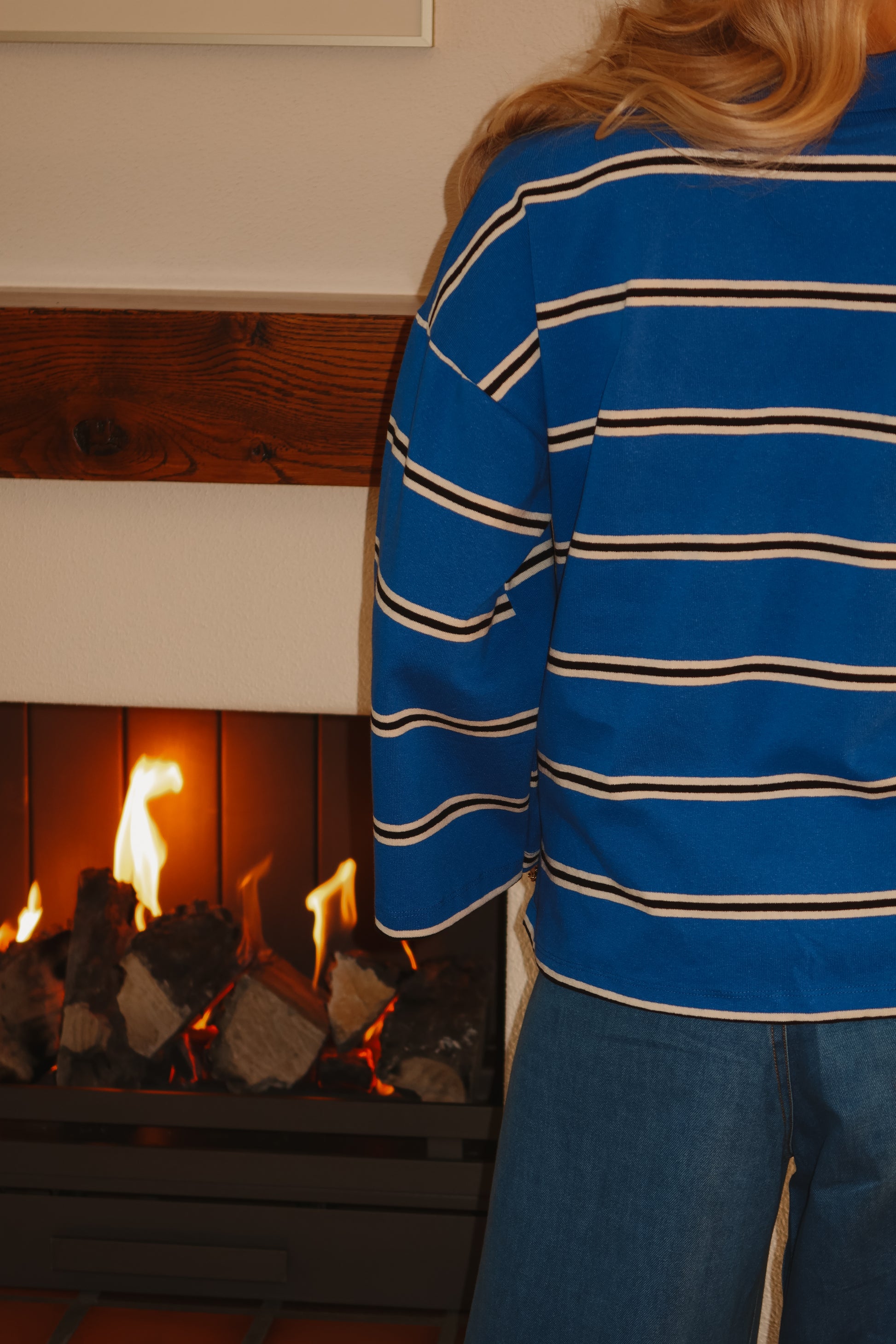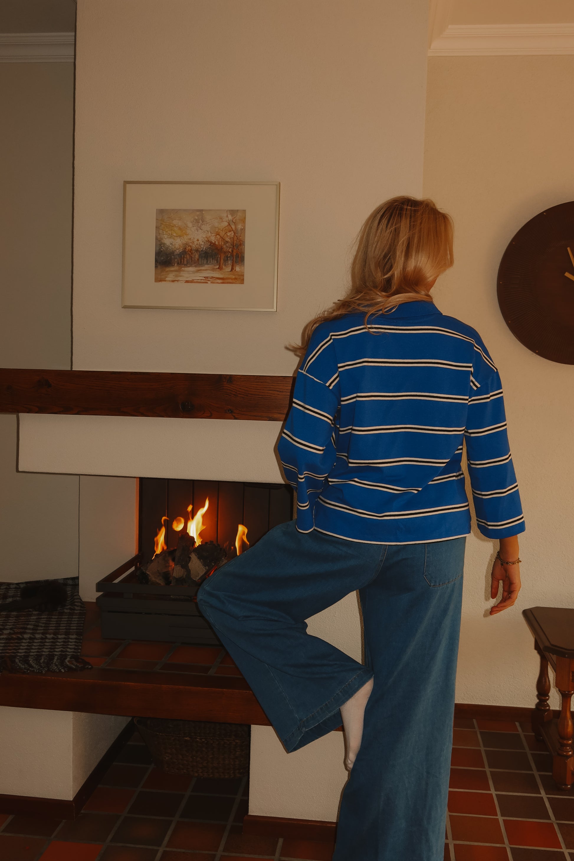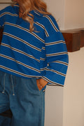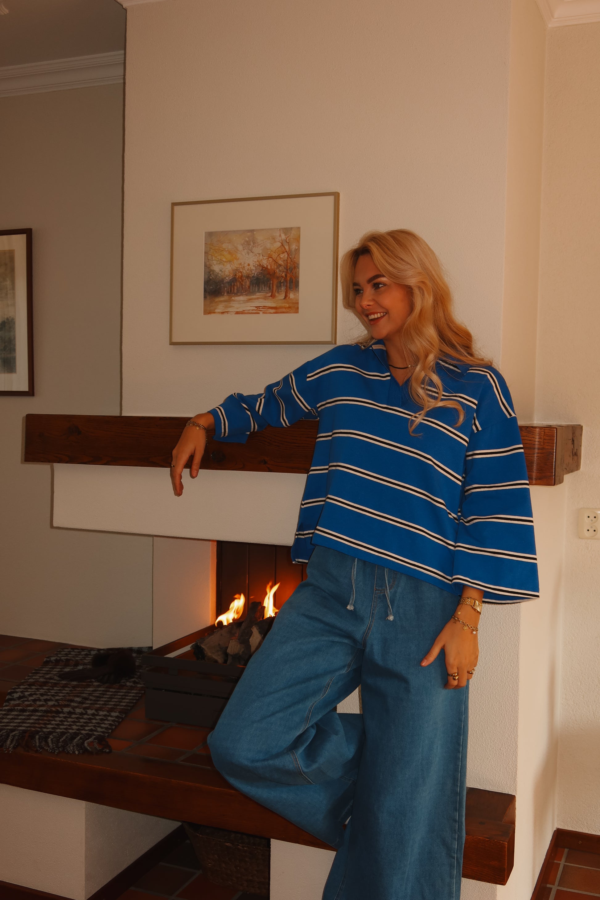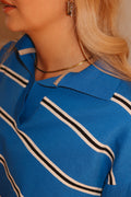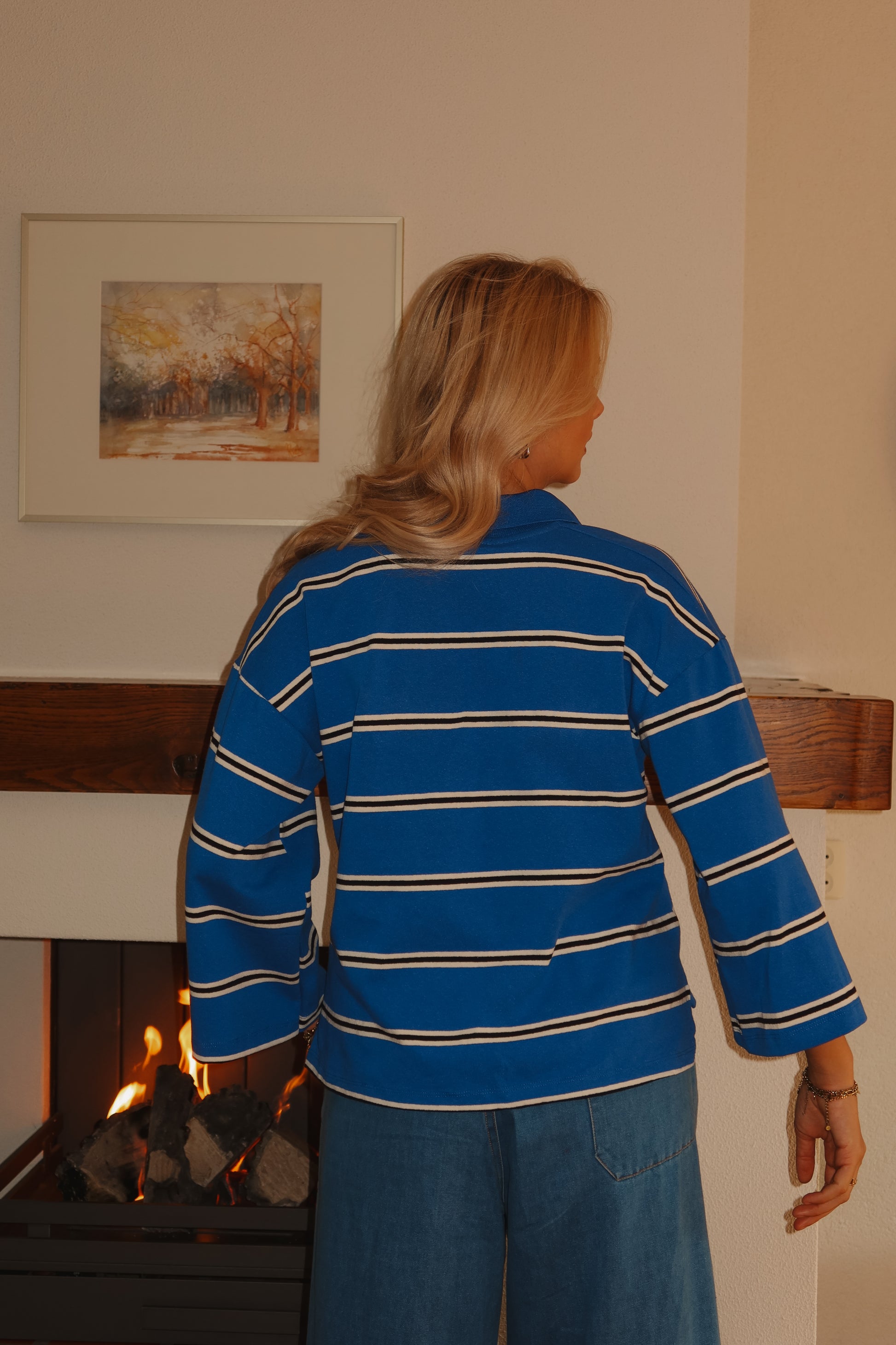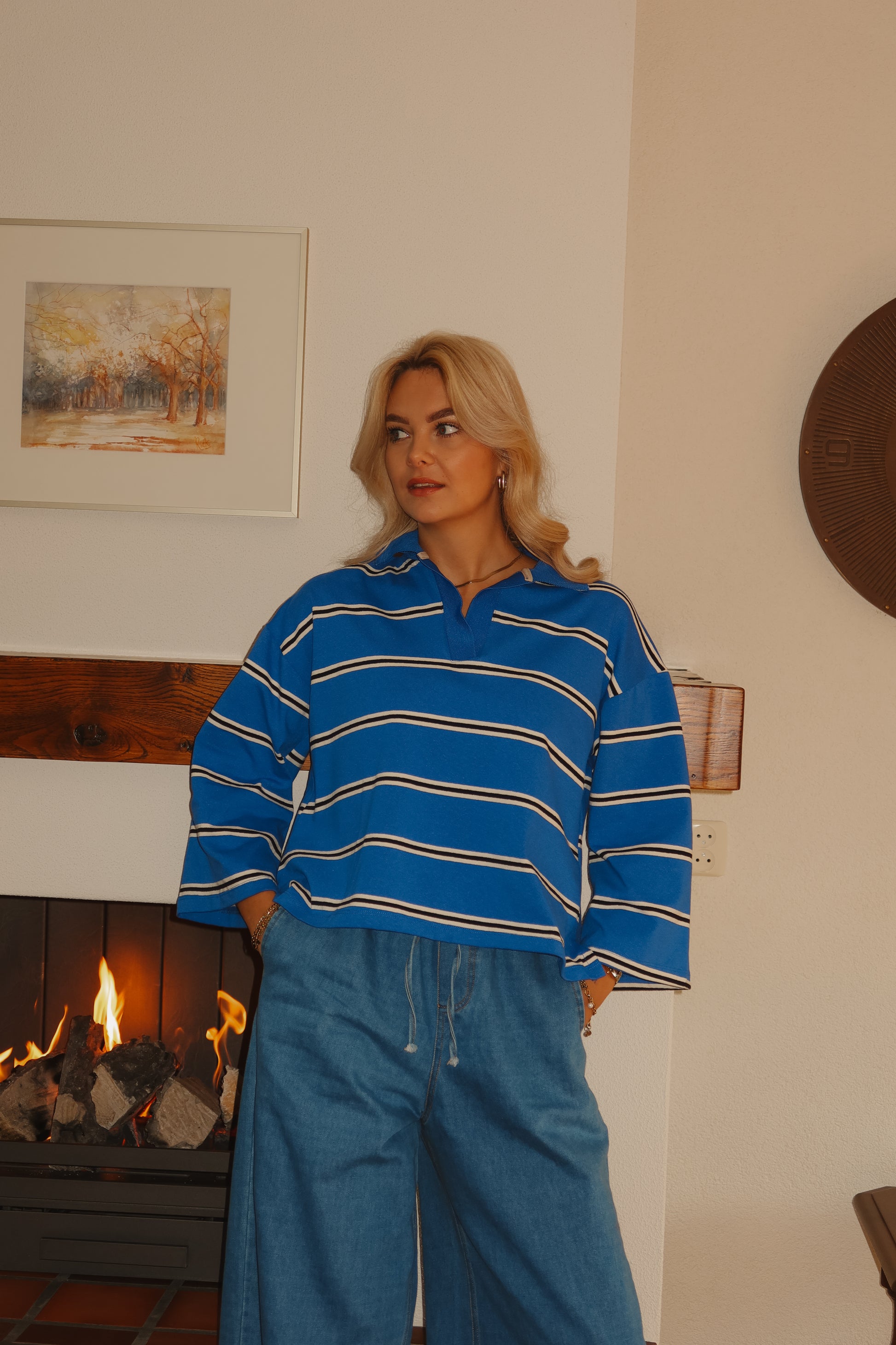 De Polo Miel Blauw geeft een frisse, moderne twist aan de klassieke rugbylook. De blauw-witte strepen en de relaxte pasvorm maken deze polo zowel casual als stijlvol. Gemaakt van stevig, comfortabel katoen dat perfect valt en lang mooi blijft. De kraag en open halslijn zorgen voor een verzorgde uitstraling, terwijl de cropped lengte het geheel een eigentijdse touch geeft. Combineer Miel Blauw met een lichte jeans of een pantalon.