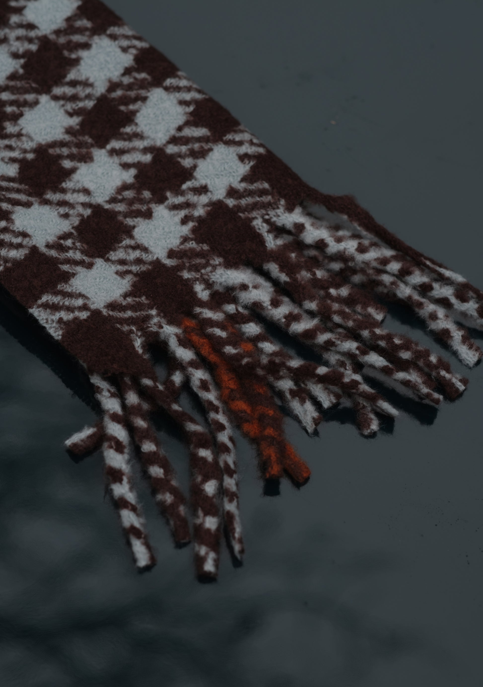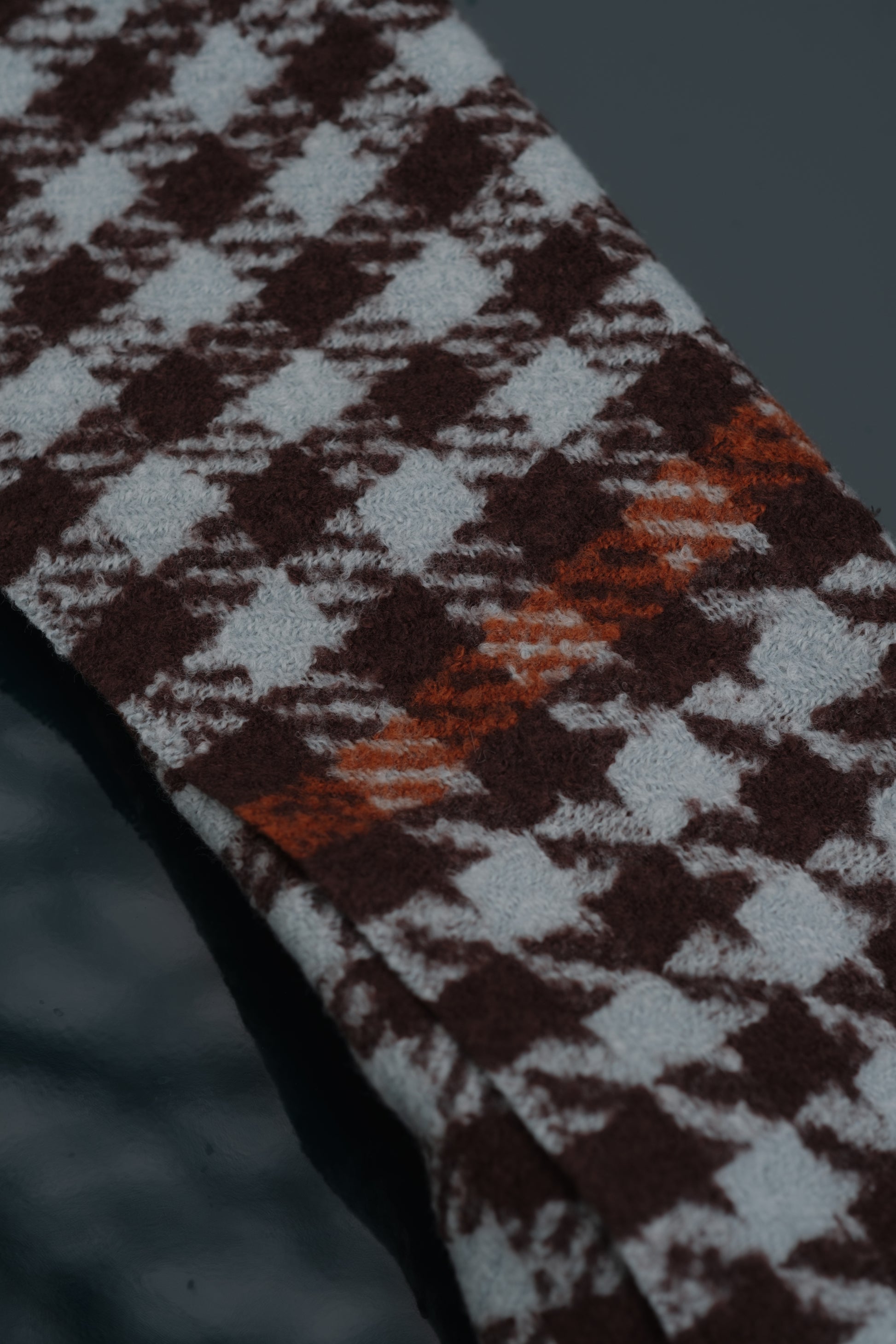 De Sjaal Elora voegt een vleugje klasse en warmte toe aan elke outfit. Het tijdloze pied-de-poulepatroon in blauw en zwart krijgt een moderne twist door de subtiele bruine accenten. De zachte, wollige structuur voelt comfortabel aan en geeft de sjaal een luxueuze uitstraling. Perfect om nonchalant over een jas te dragen of elegant om de hals te slaan