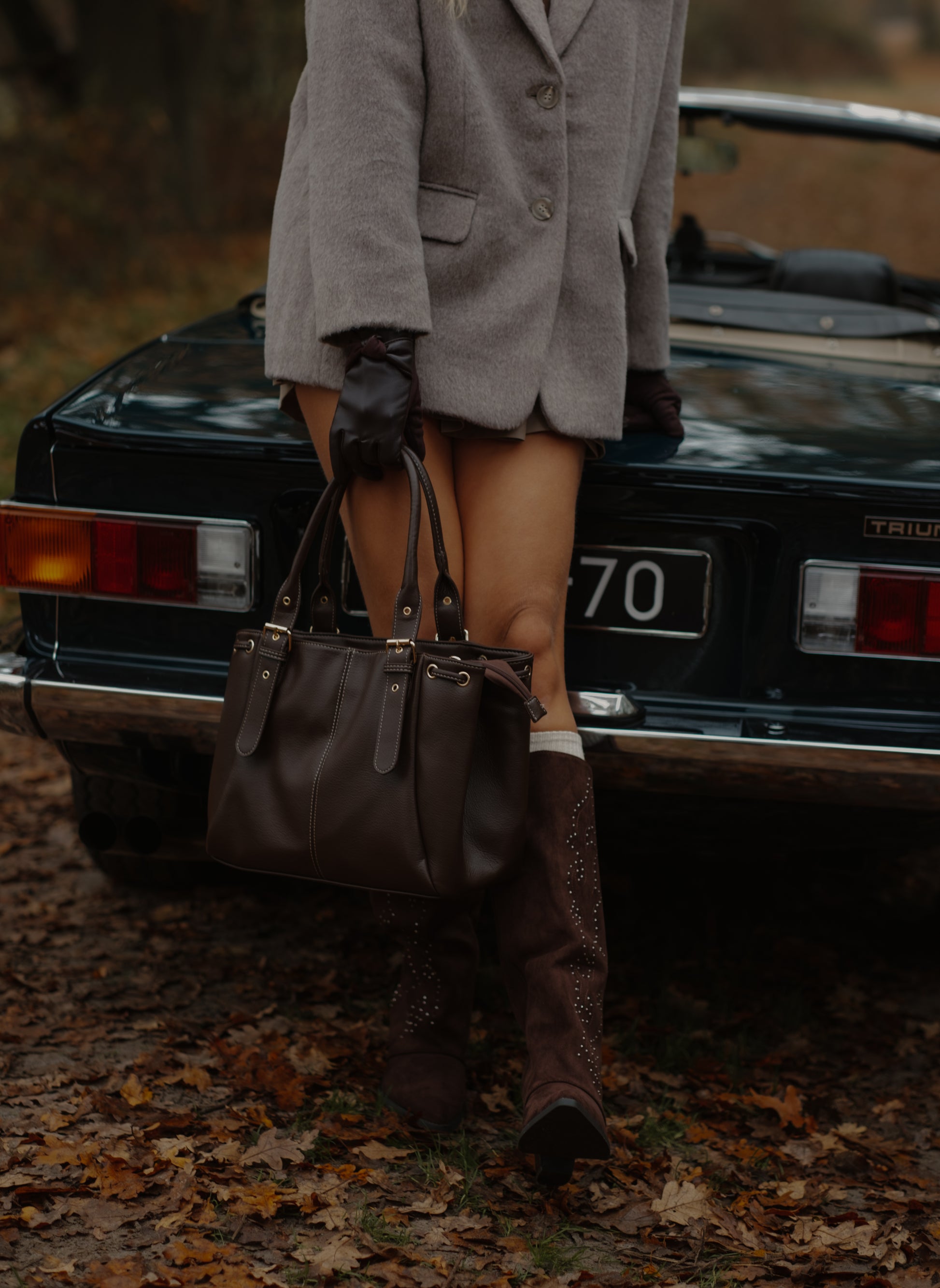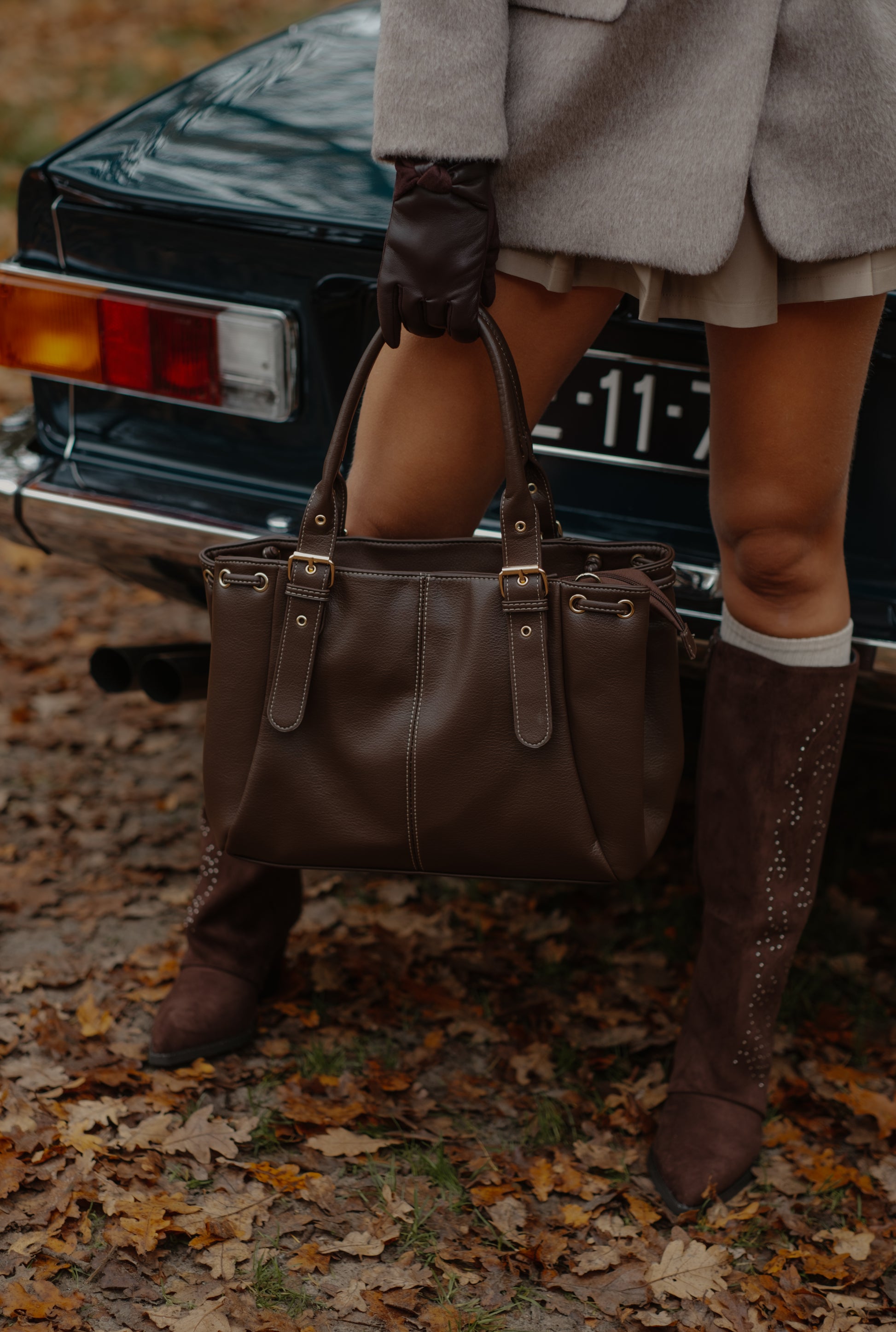 De Tas Glory straalt elegantie en kracht uit. Gemaakt van hoogwaardig imitatieleer met een rijke, chocoladebruine kleur en gouden details, is Glory zowel stijlvol als praktisch. De tas heeft een ruime indeling met stevige hengsels, waardoor ze perfect is voor dagelijks gebruik