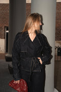 De Dream top is een stijlvolle denim blouse met een verfijnde, vrouwelijke snit. De ceintuur in de taille benadrukt het silhouet, terwijl de brede manchetten en zichtbare stiksels een stoere touch geven. Gemaakt van stevig, diep indigo denim dat mooi in vorm blijft, biedt deze top een moderne interpretatie van klassiek denim. Perfect te dragen als co-ord met de Dream jeans of los op een pantalon voor een krachtige, eigentijdse look.