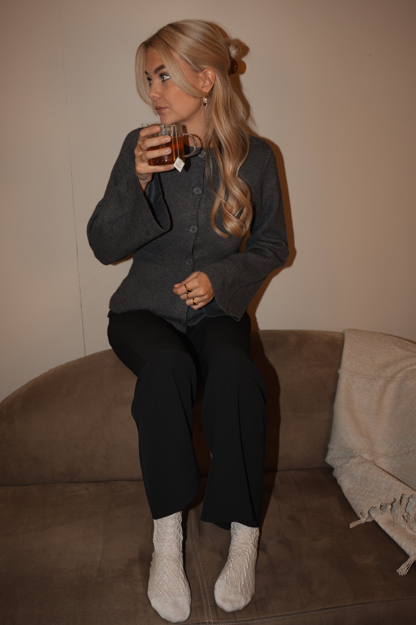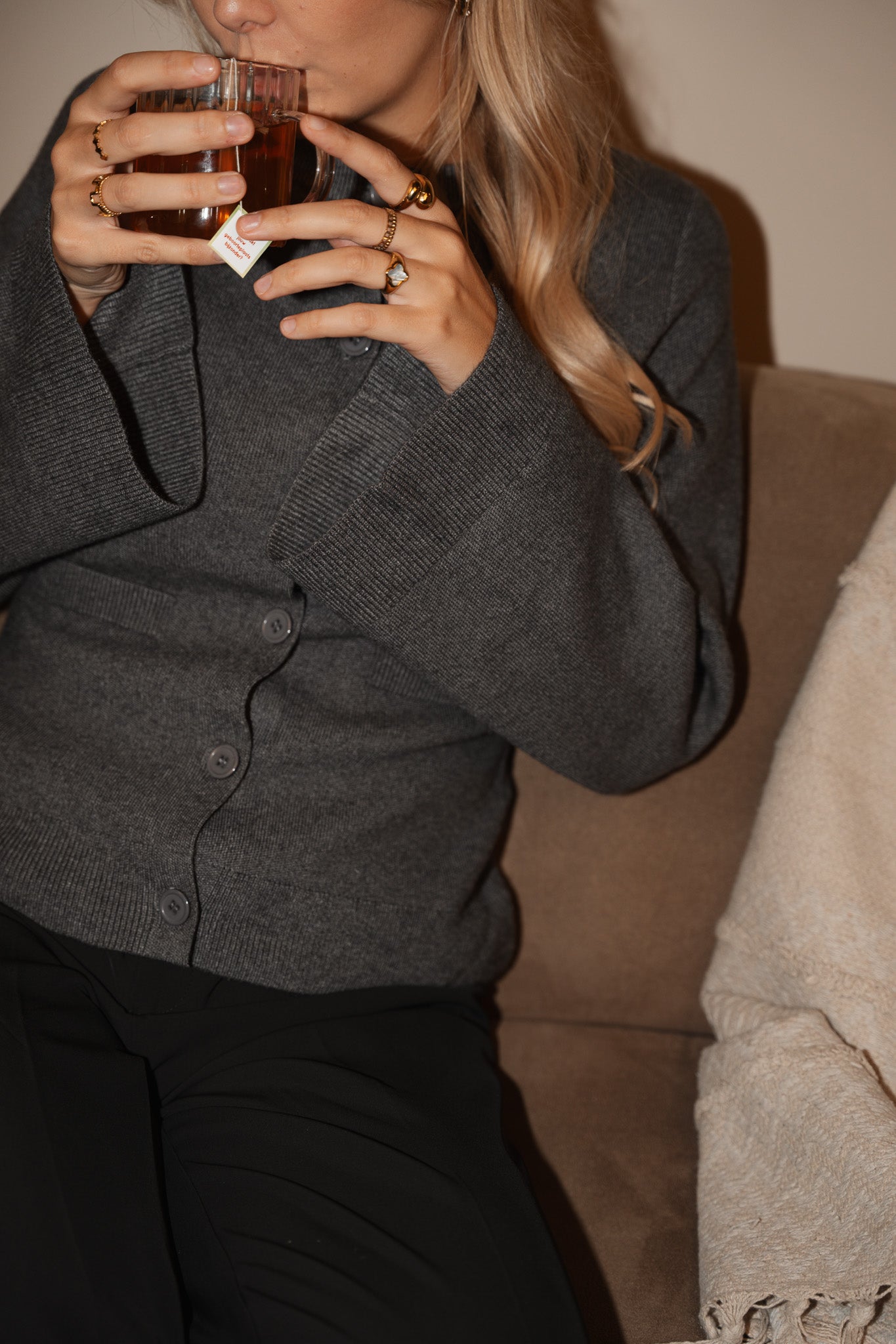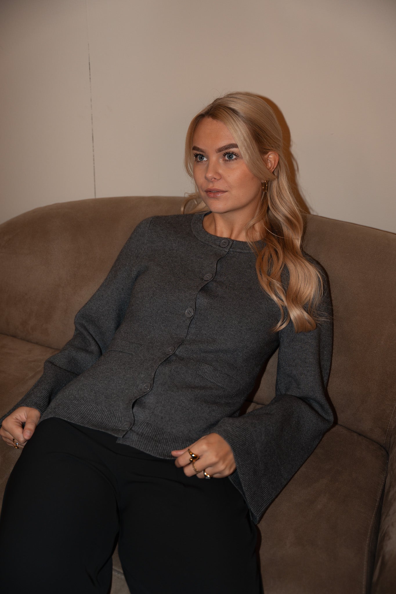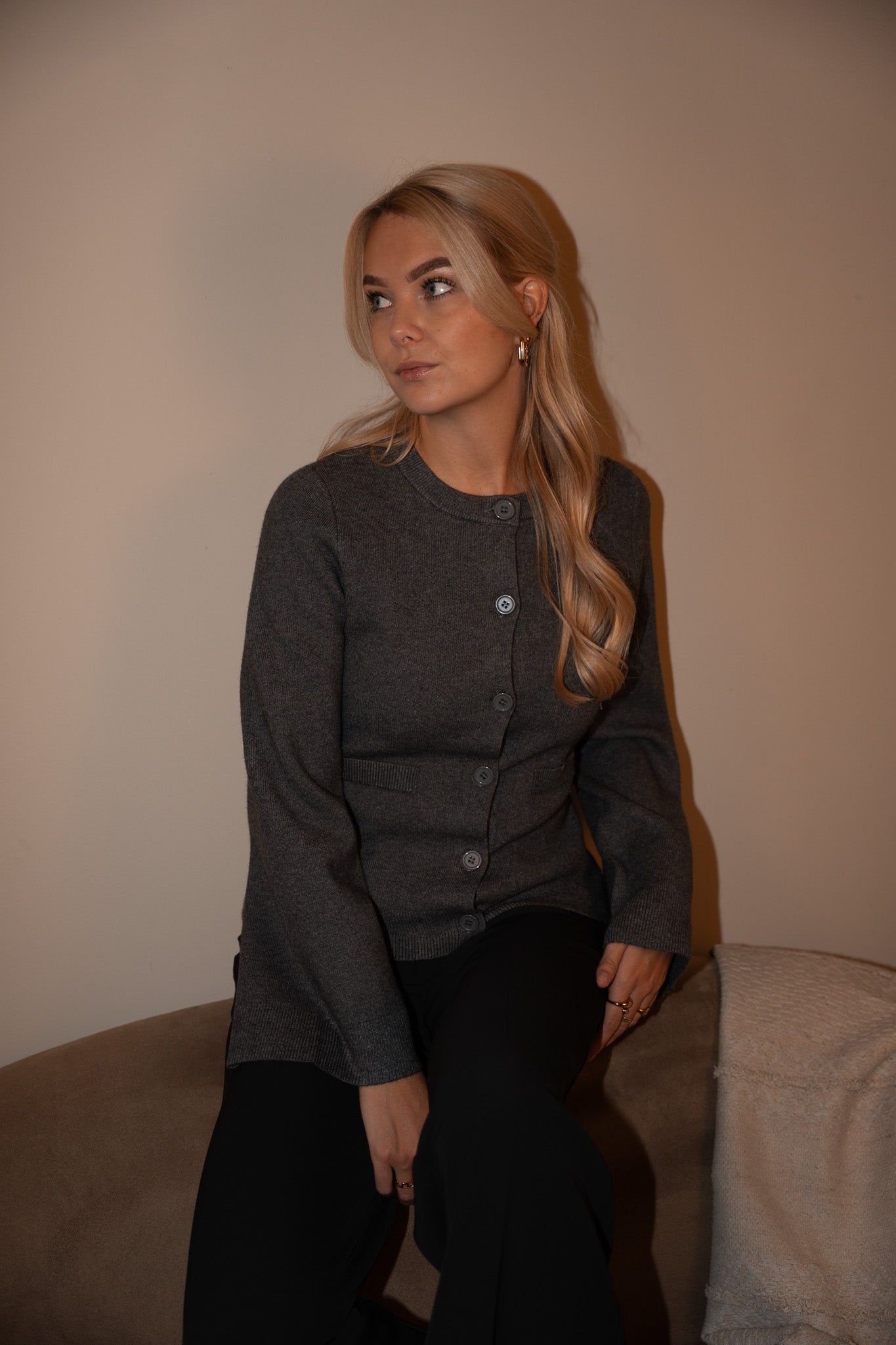 De Haze trui grijs is een elegante, getailleerde knit met een tijdloze uitstraling. De subtiele melange van wit en grijs geeft de trui een verfijnde diepte, terwijl de aansluitende pasvorm het silhouet mooi accentueert. De iets uitlopende mouwen zorgen voor een moderne twist, perfect in balans met het klassieke design. Een veelzijdig item dat zowel chic als comfortabel aanvoelt