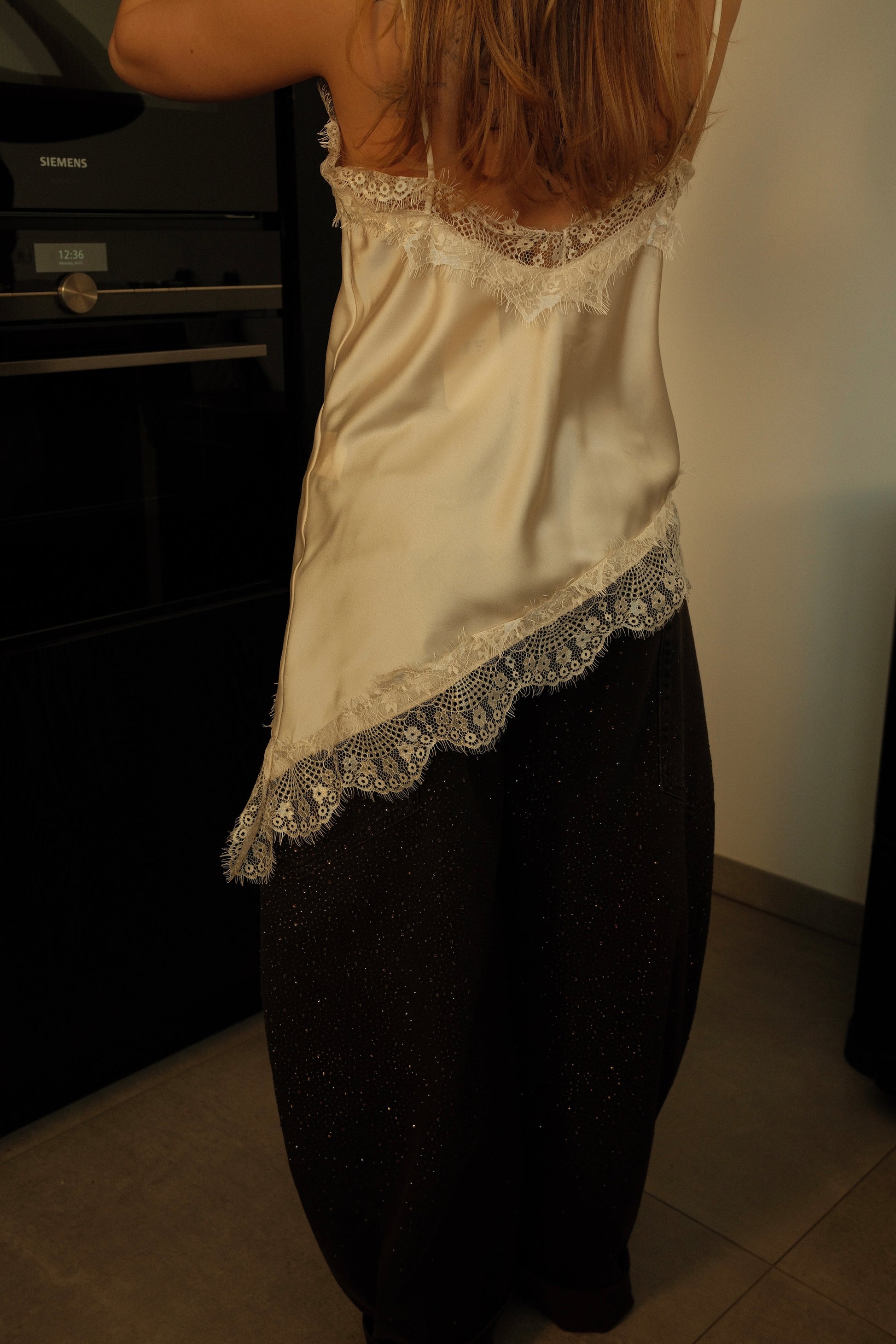 De Top Terra is de perfecte combinatie van vrouwelijkheid en elegantie. Deze satijnen top met verfijnde kanten details straalt luxe en zachtheid uit. Het soepele materiaal voelt zijdezacht aan op de huid en valt prachtig losjes om het lichaam. Dankzij de verstelbare bandjes en subtiele V-hals creëer je moeiteloos een flatterend silhouet. Draag Terra casual met een jeans of combineer haar chic met een blazer voor een avondlook vol allure.