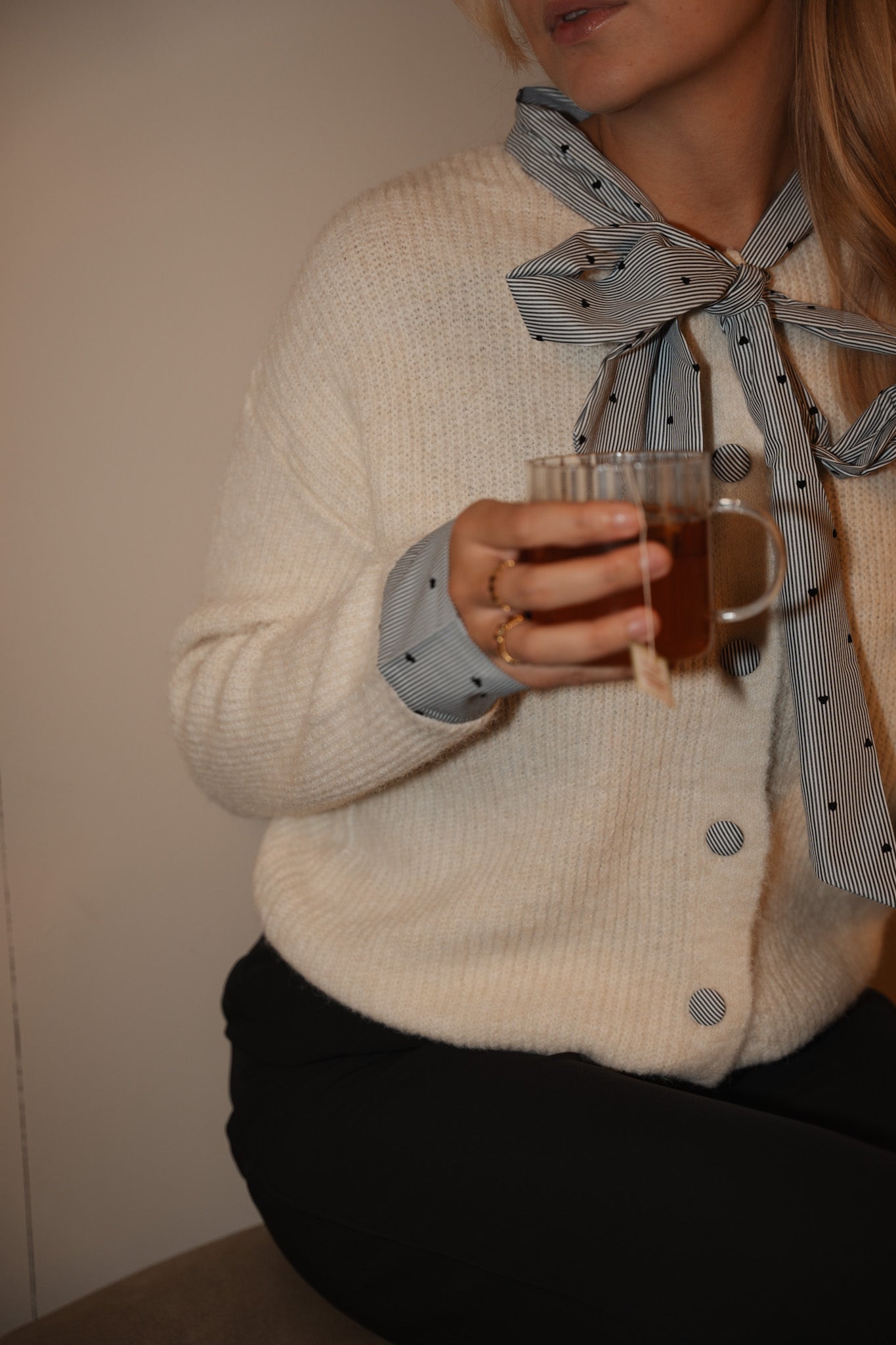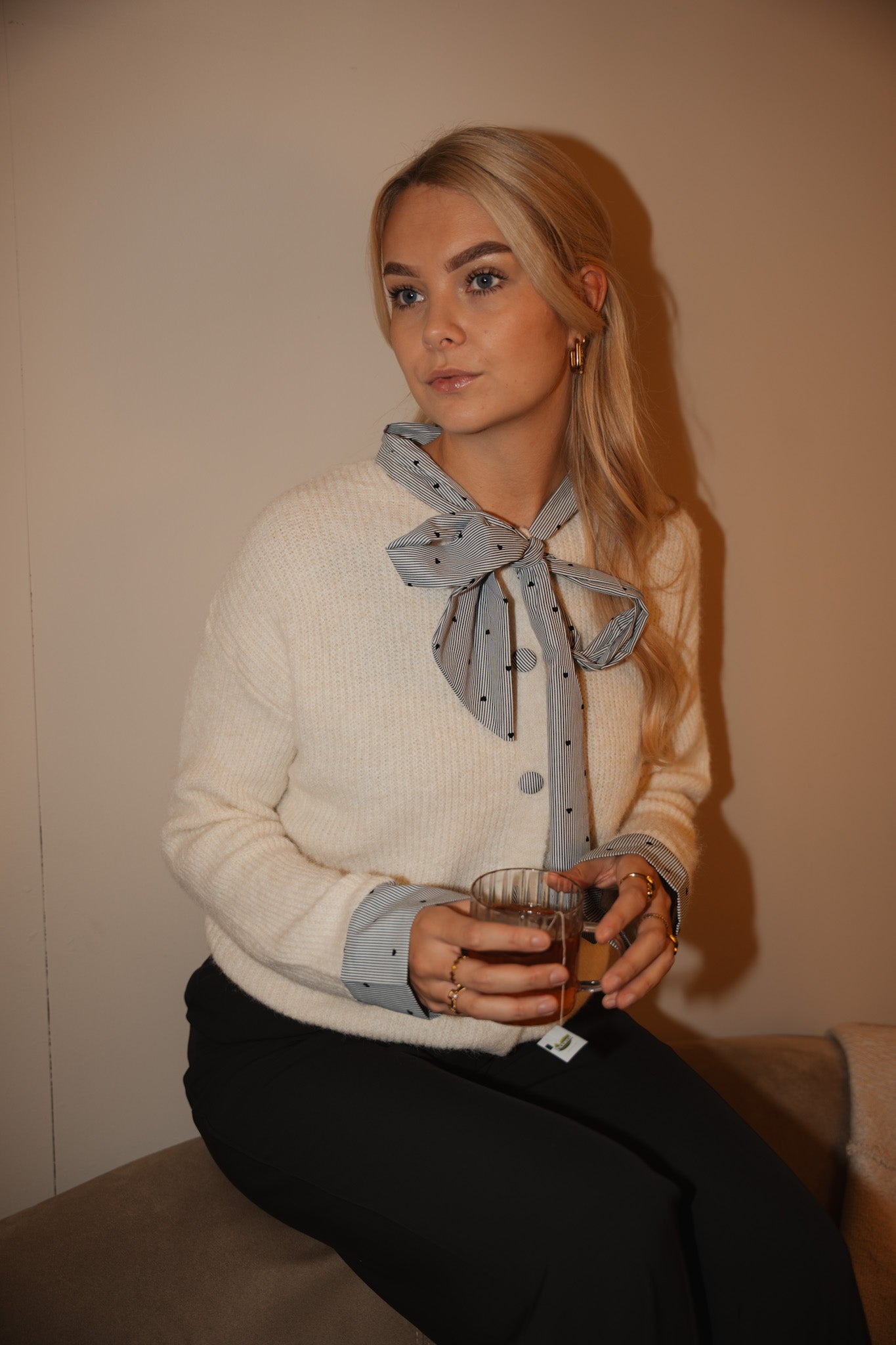 De Flow trui creme straalt eenvoud en verfijning uit. Deze luchtige knit in helder wit heeft een moeiteloze, elegante uitstraling die bij elke stijl past. De vloeiende pasvorm en subtiele structuur geven de trui een modern silhouet met een zachte, luxueuze feel. Perfect om casual te dragen op een jeans of chic te combineren met een rok of pantalon