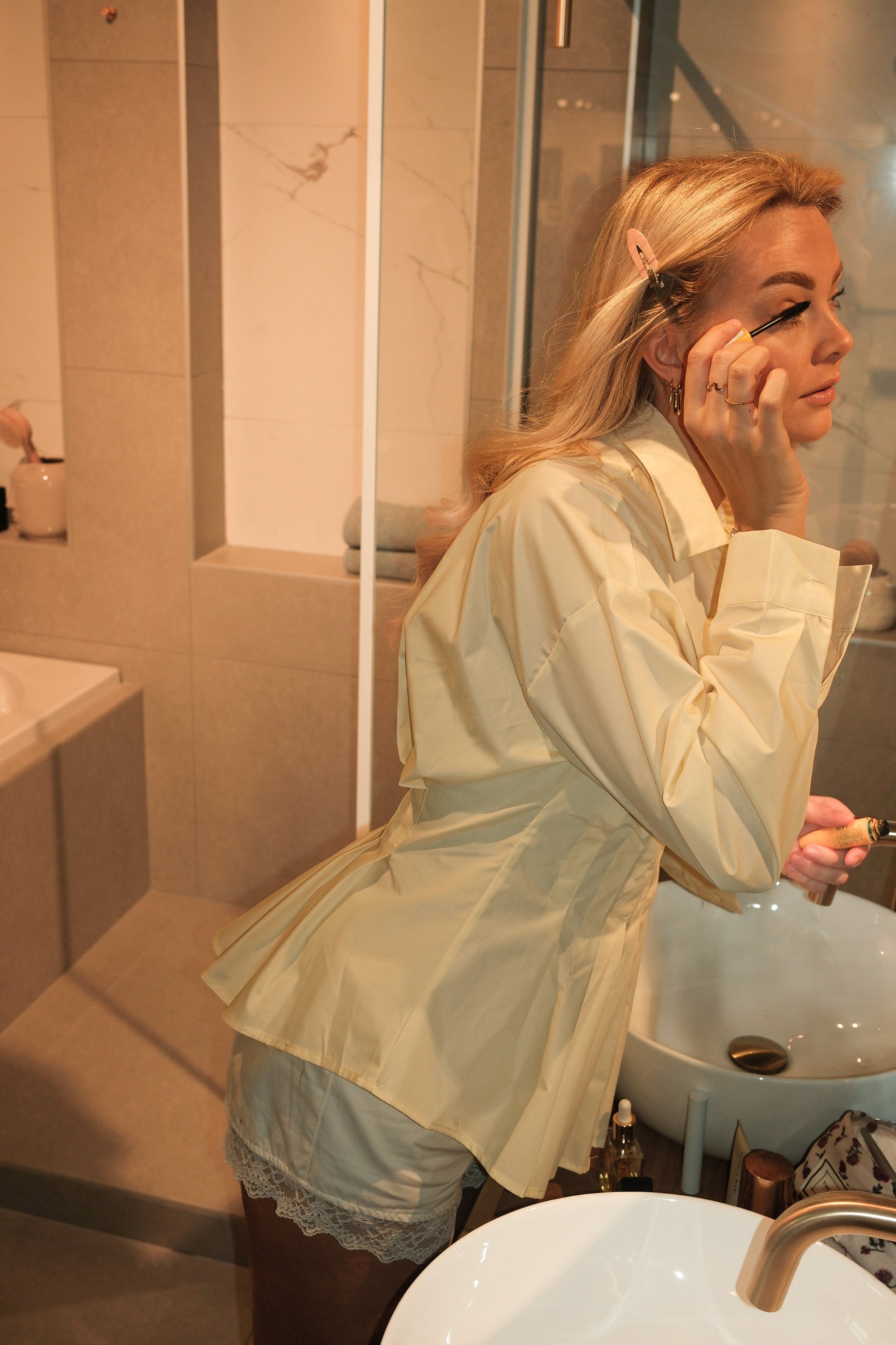 De Blouse Soof in het boter geel is een elegante kanten blouse met een verfijnd bloemenpatroon en transparante details. De hoge hals met striksluiting geeft een romantische en stijlvolle uitstraling, terwijl de lange mouwen zorgen voor een chique touch. Perfect te combineren met een jeans voor een vrouwelijke everyday look of met een rok voor een meer geklede outfit.