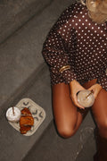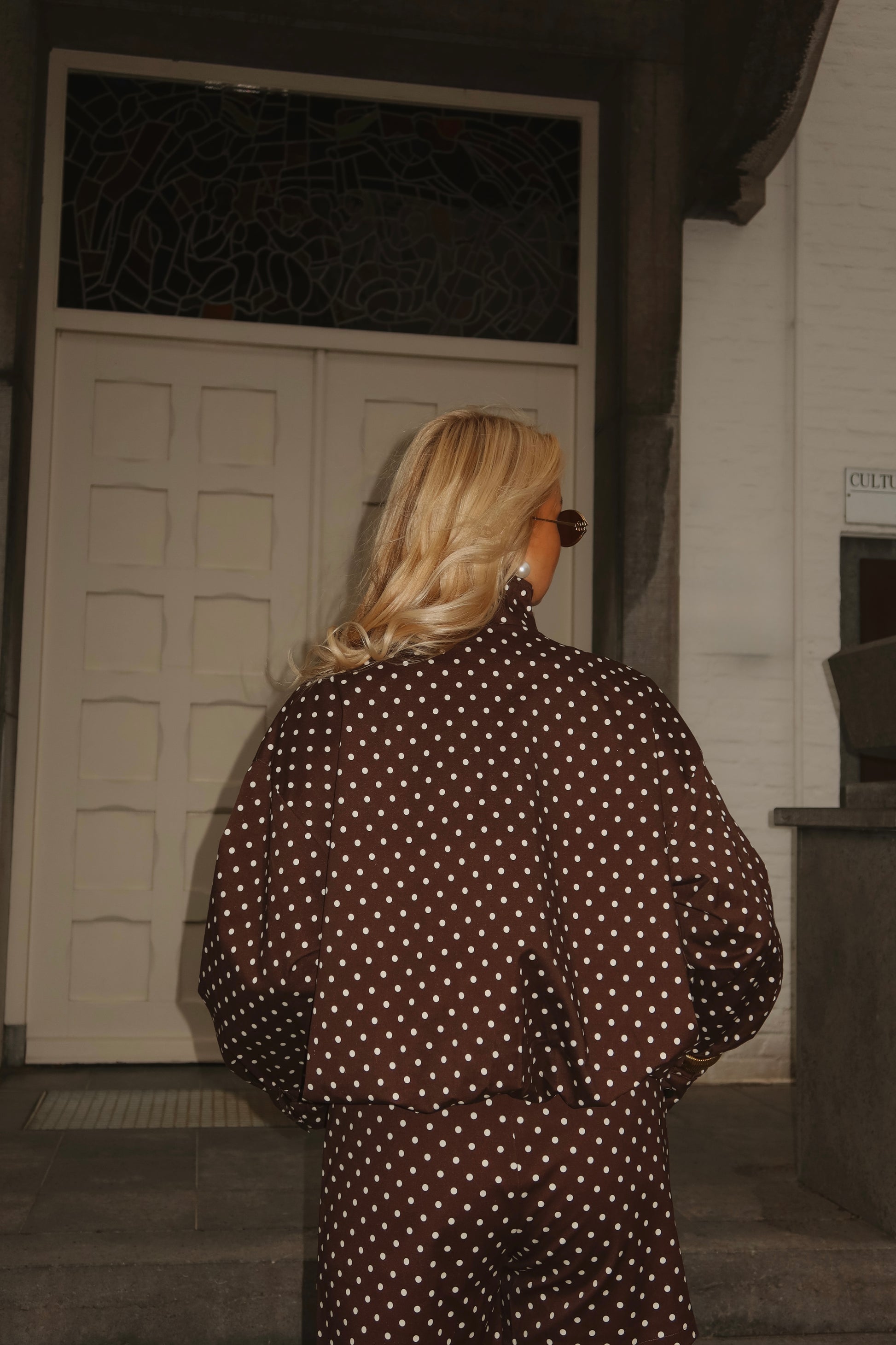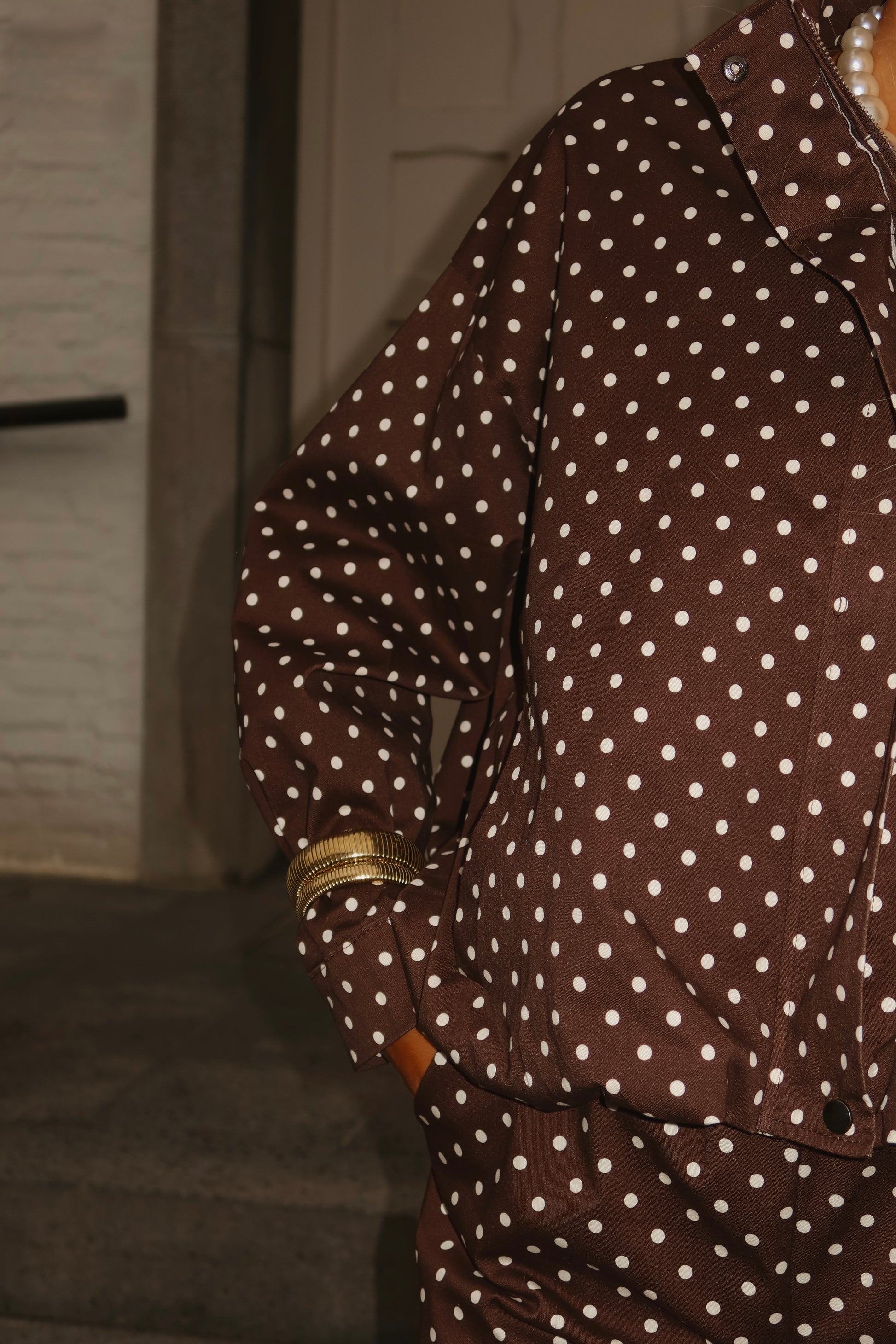 Dit bruin Jasje Zara met zwarte polkadots van Zara heeft een speelse maar elegante uitstraling. Het lichtgewicht materiaal en de losse fit maken het ideaal voor zowel casual als meer geklede outfits. Met de hoge kraag en subtiele details geeft dit jasje een moderne, frisse touch aan iedere look.