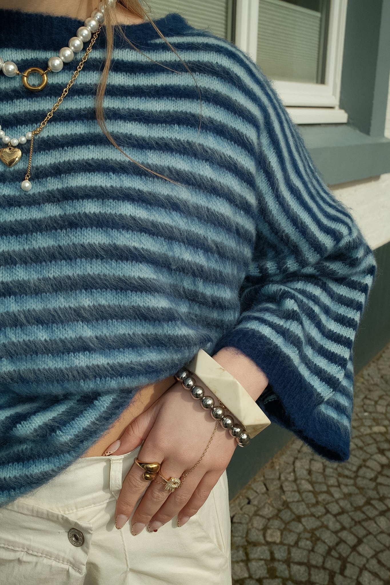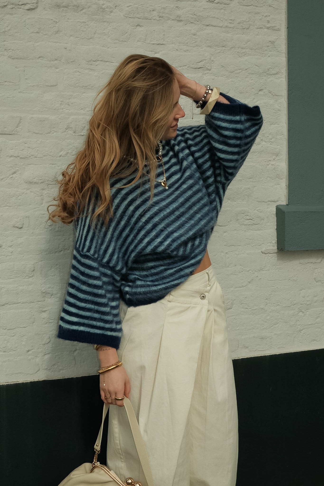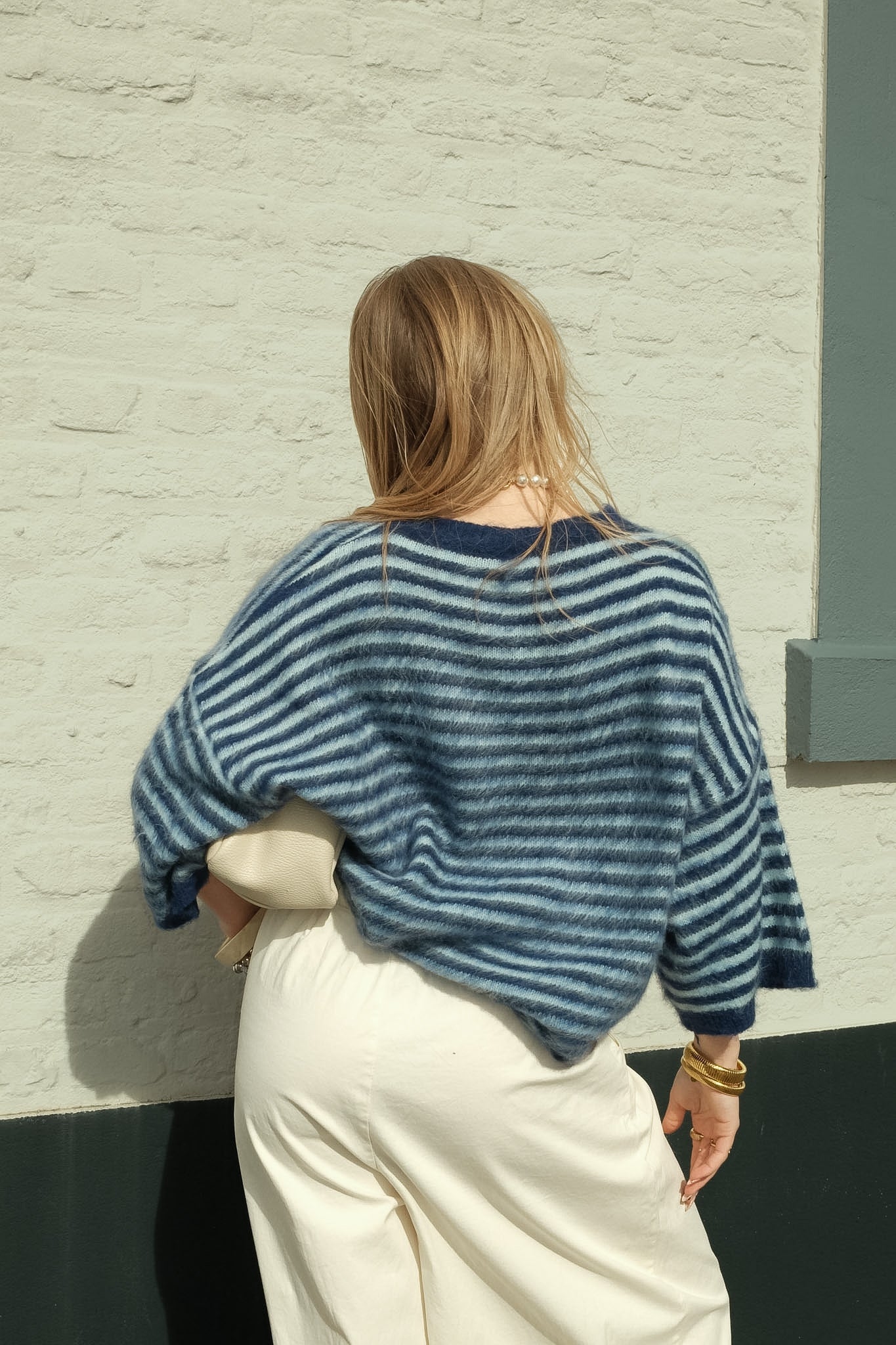 De Jules knit is een zachte statement trui met een coole blauwe basis en fijne lichtblauwe strepen. De fluffy structuur en losvallende fit geven een comfortabele, luxe uitstraling. Perfect te combineren met denim voor een stijlvolle, effortless look.