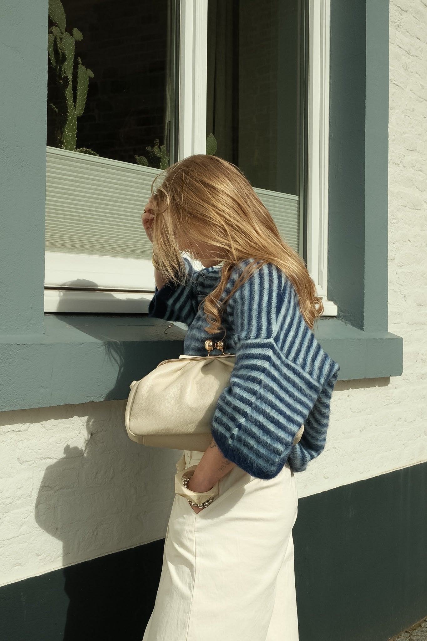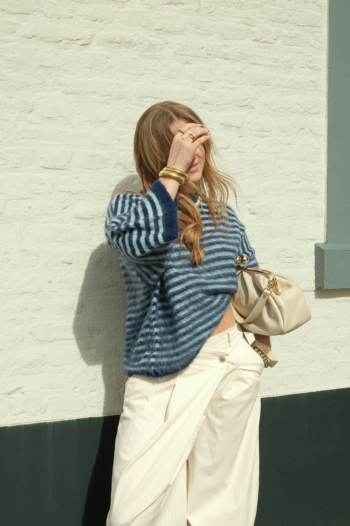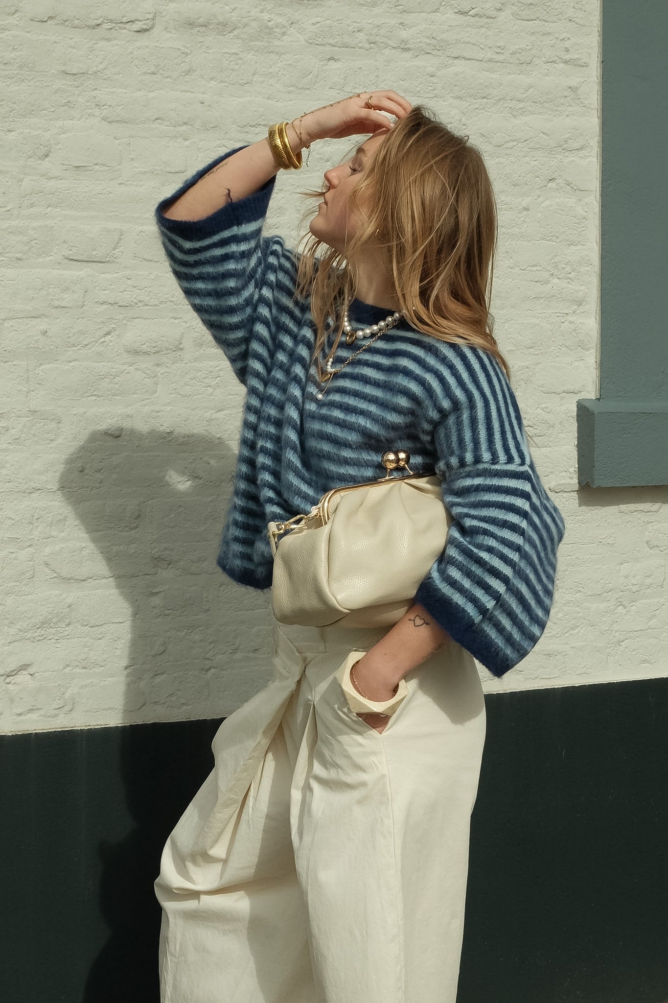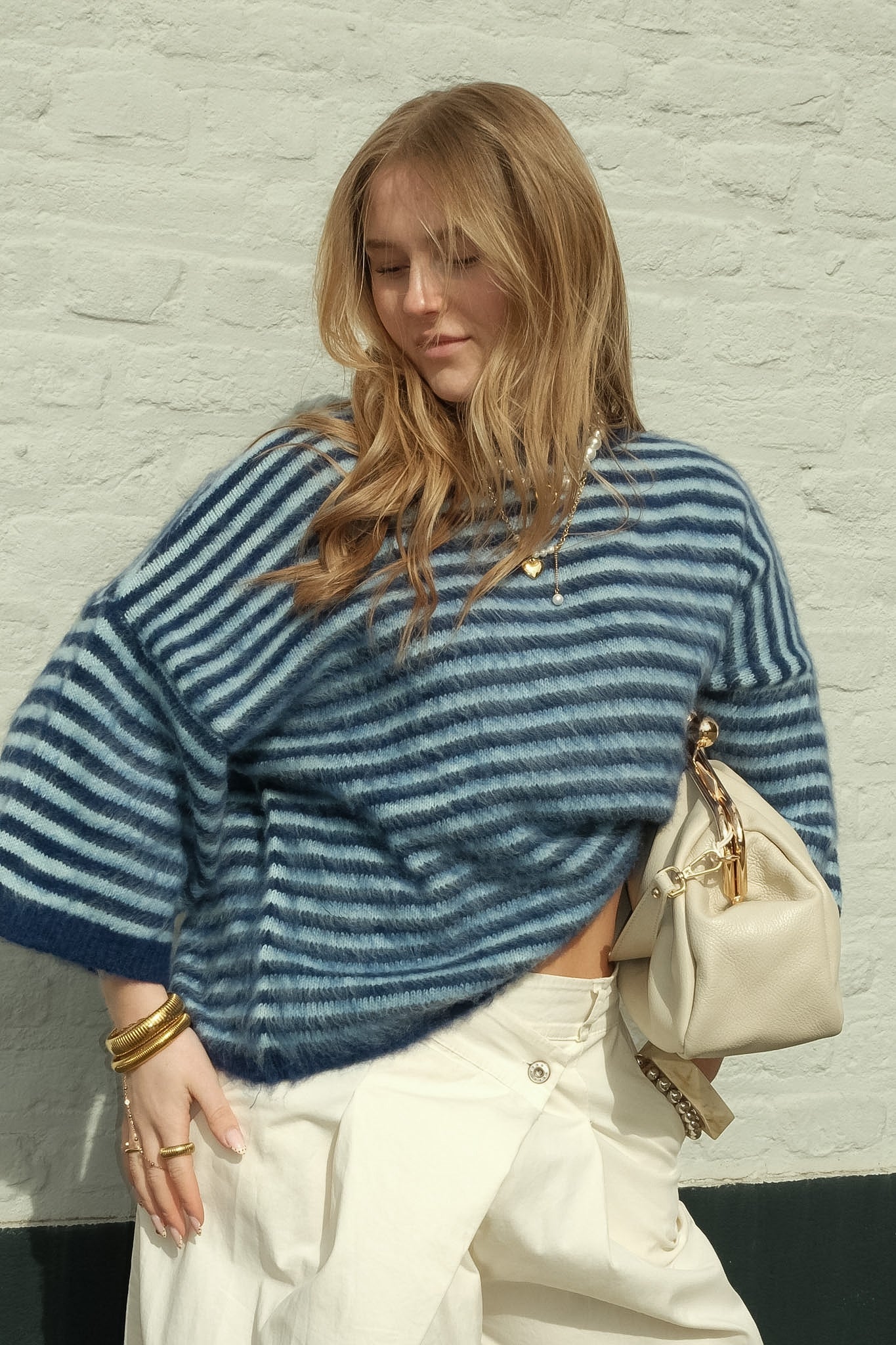 De Jules knit is een zachte statement trui met een coole blauwe basis en fijne lichtblauwe strepen. De fluffy structuur en losvallende fit geven een comfortabele, luxe uitstraling. Perfect te combineren met denim voor een stijlvolle, effortless look.