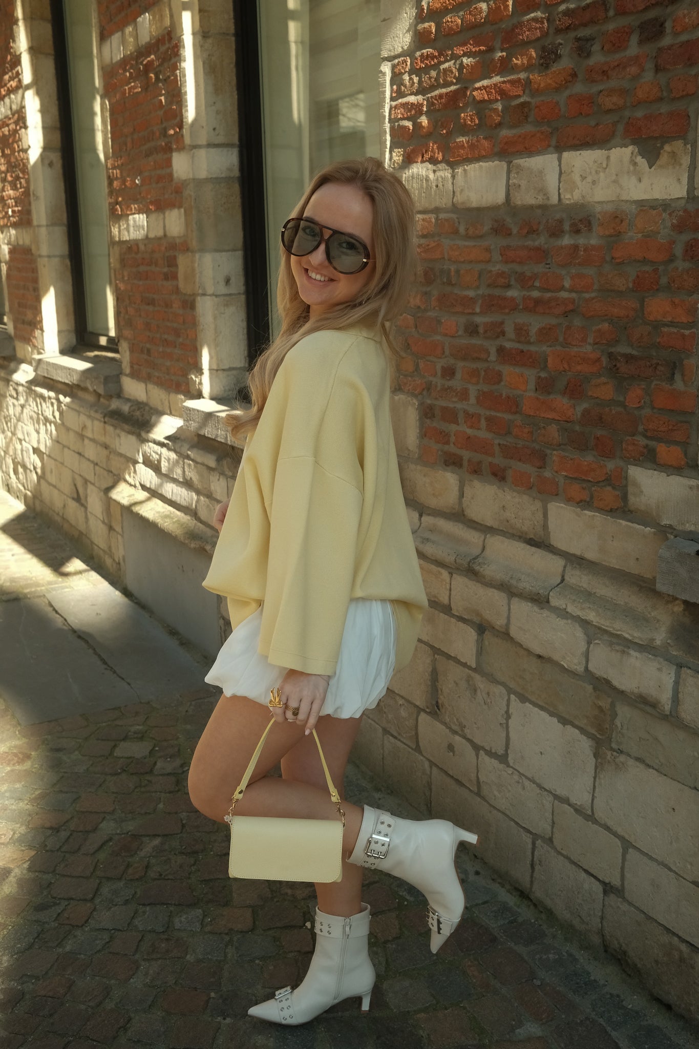 De Brooklyn longsleeve heeft een oversized pasvorm en een sportieve uitstraling. De zachte gele kleur en de subtiele Brooklyn print op de voorkant geven de top een casual maar stijlvolle look. De lange, wijde mouwen en de kraag zorgen voor een comfortabele fit, perfect om te combineren met een rok of jeans voor een effortless everyday outfit.