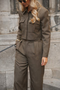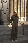 Deze elegante Pantalon Nova in khaki combineert stijl en comfort op een verfijnde manier. De pantalon heeft een tijdloze uitstraling met zijn subtiele plooien aan de voorzijde en de wijde pijpen, wat zorgt voor een moderne, doch klassieke look. Het bijpassende riempje accentueert de taille en geeft de broek een mooie, afgewerkte uitstraling.