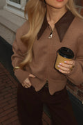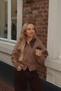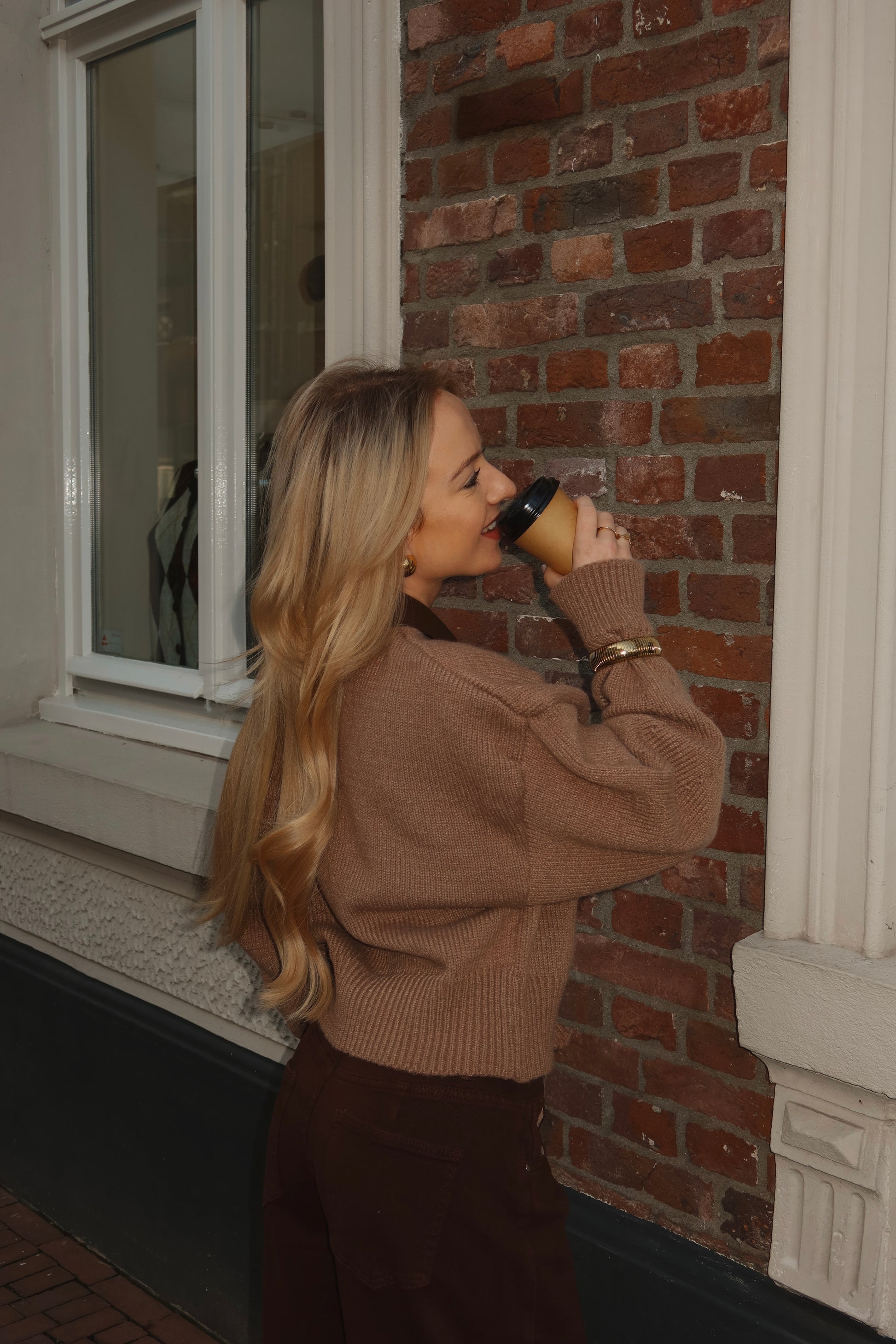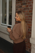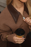 De Liora zip is een stijlvolle gebreide trui met een opvallende kraag van imitatieleer. De taupe kleur en grove structuur geven het item een moderne, luxe uitstraling. Dankzij de ritssluiting kun je de trui zowel open als gesloten dragen, ideaal voor laagjeslooks in het najaar. De zachte, stevige knit biedt comfort en warmte, terwijl de leren kraag zorgt voor een trendy twist. Perfect te combineren met een wide leg pantalon of denim voor een casual-chique look.