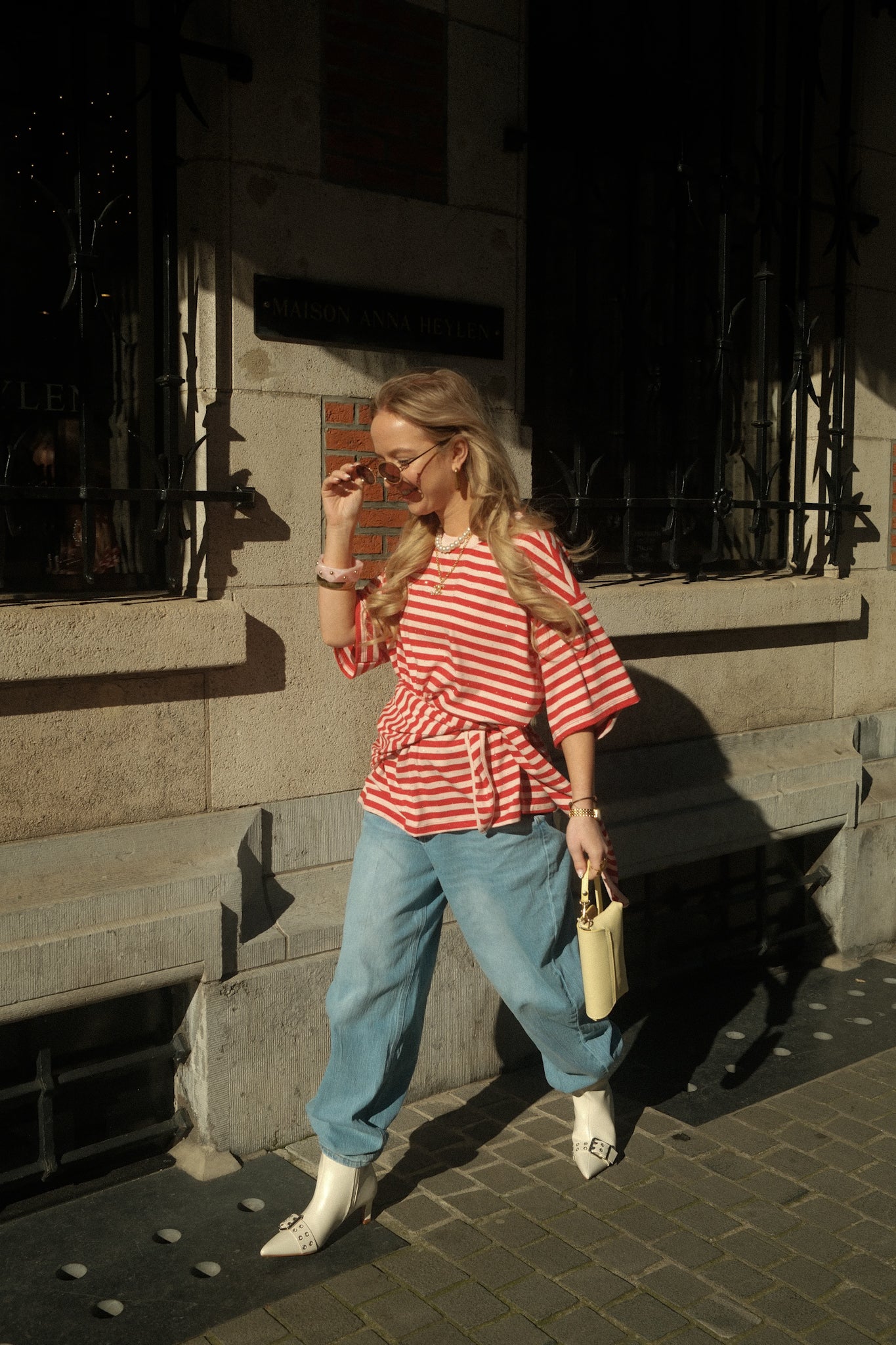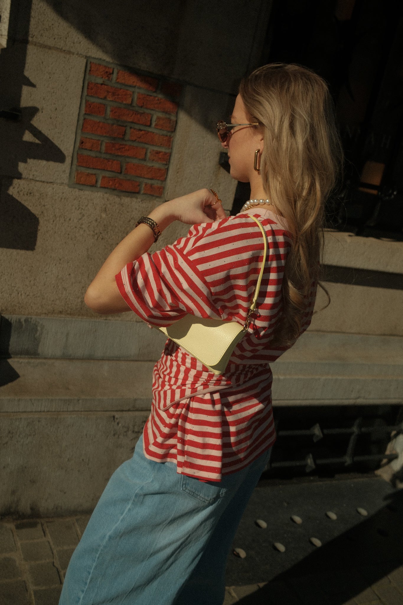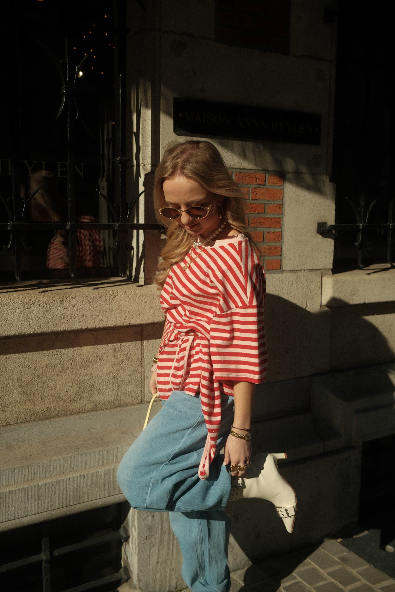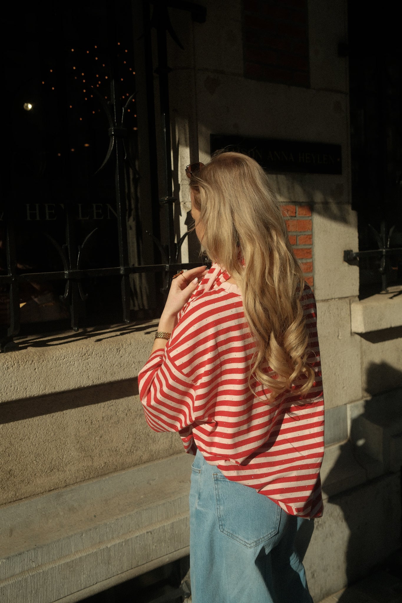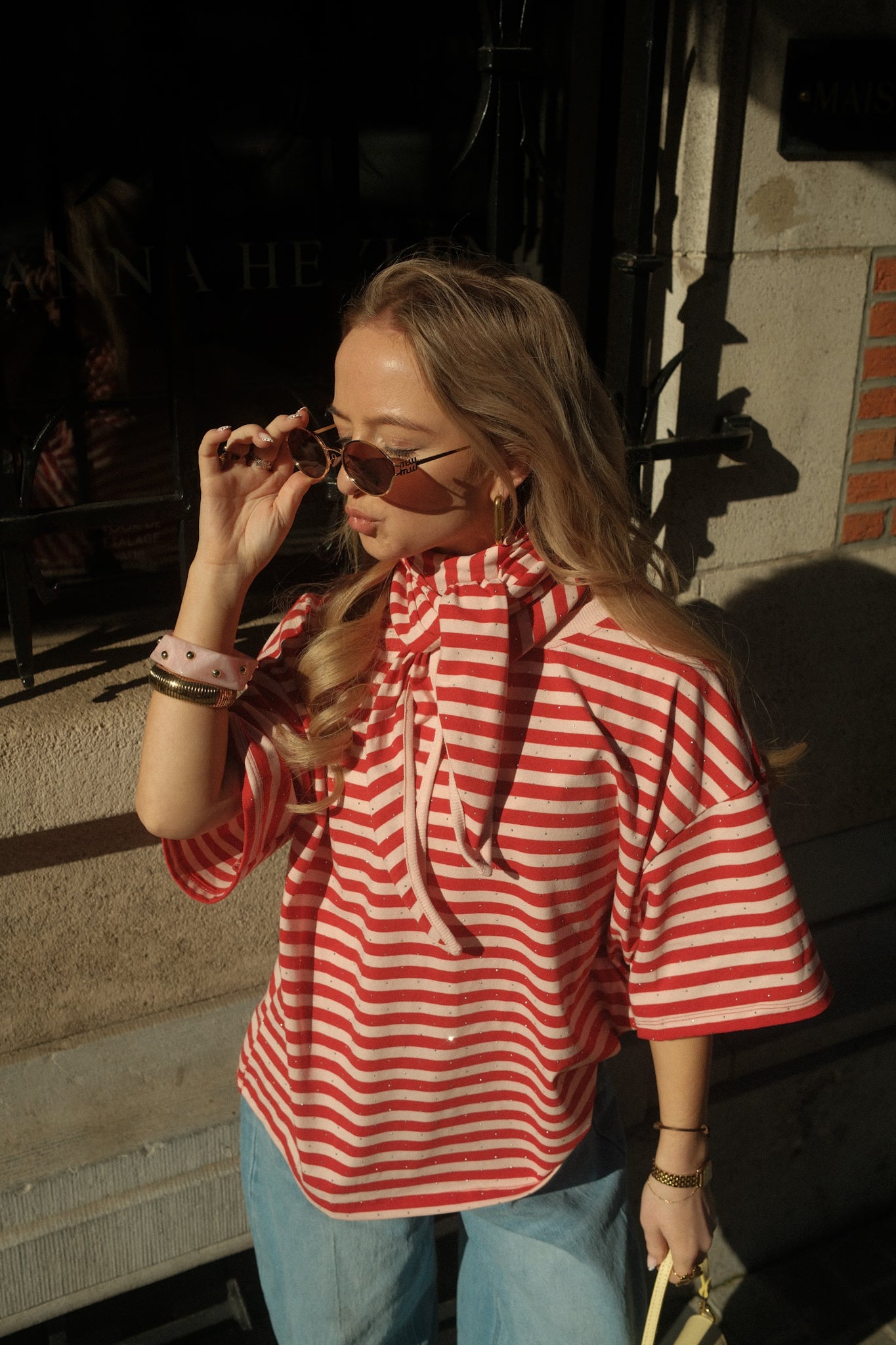 De Shirt Nina heeft een relaxed, oversized pasvorm en een speels streeppatroon in rood en roze. De stof is afgewerkt met kleine subtiele steentjes die zorgen voor een elegante sparkle. Bij het T-shirt zit een bijpassend sjaaltje dat je op verschillende manieren kunt stylen, bijvoorbeeld los om de hals, geknoopt of als extra detail bij je outfit. De wijde mouwen en comfortabele fit maken dit een veelzijdig item dat elke look net wat extra geeft.