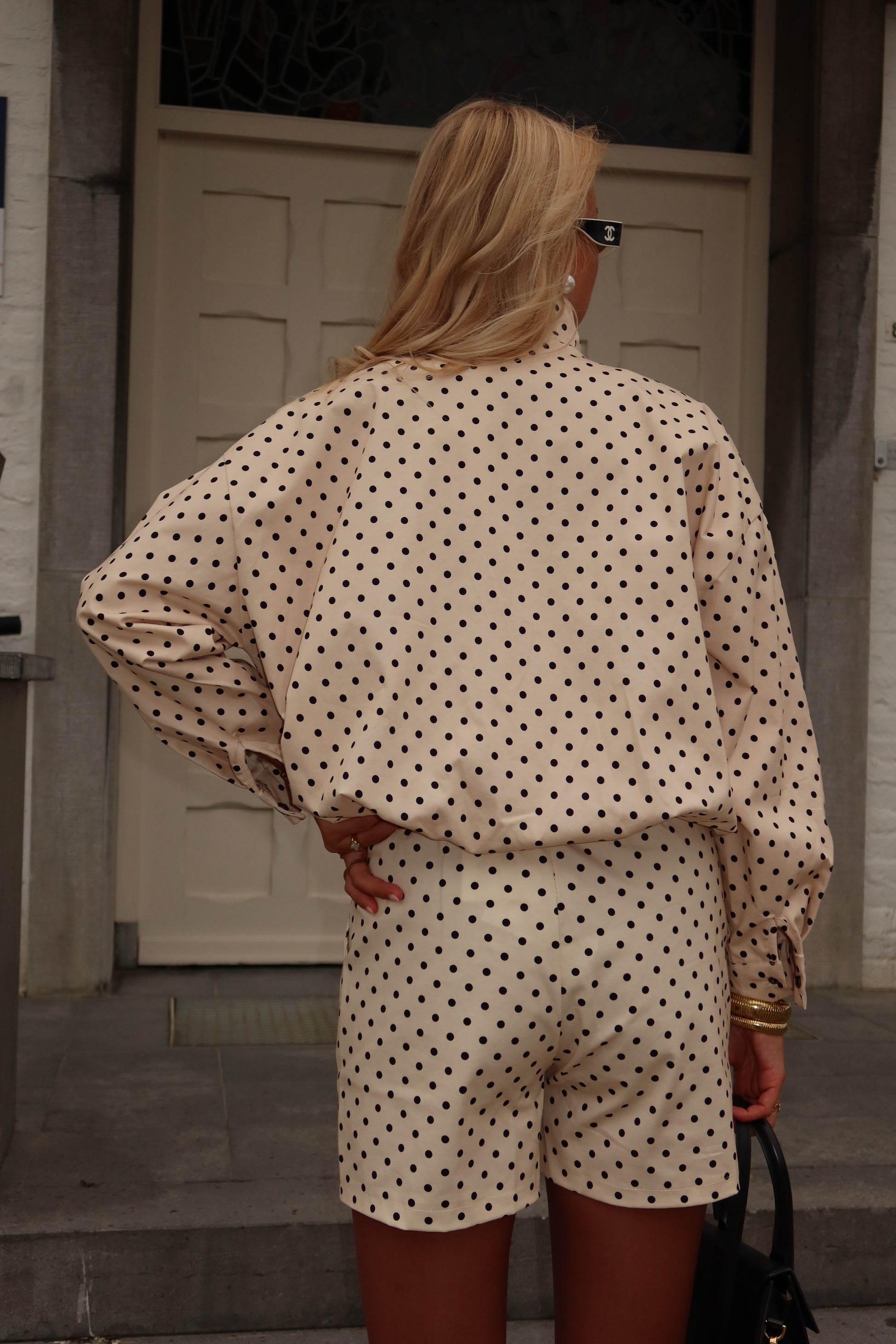 De crème polkadot Short Zara is een luchtige en stijlvolle basis voor de zomer. Het comfortabele model met hoge taille en speelse print combineert moeiteloos met zowel casual tops als chicere blouses.