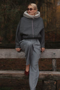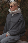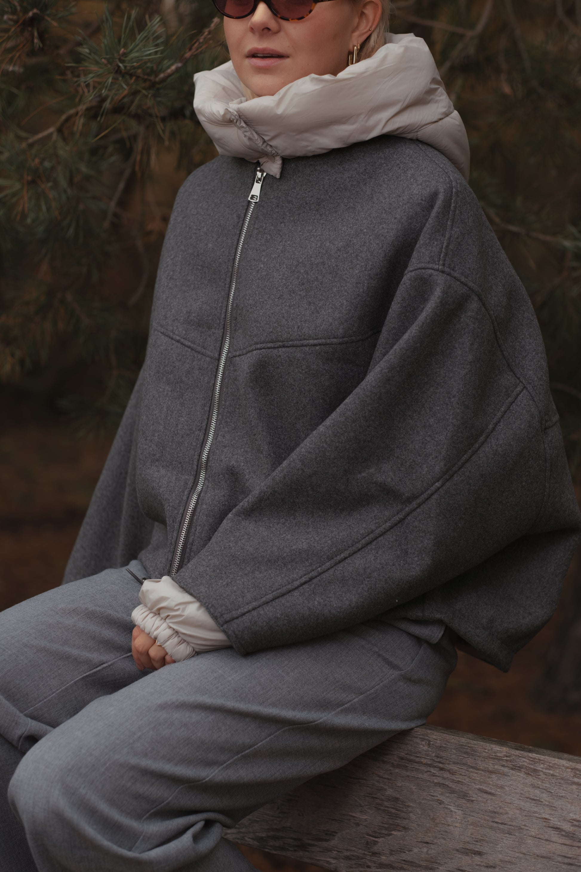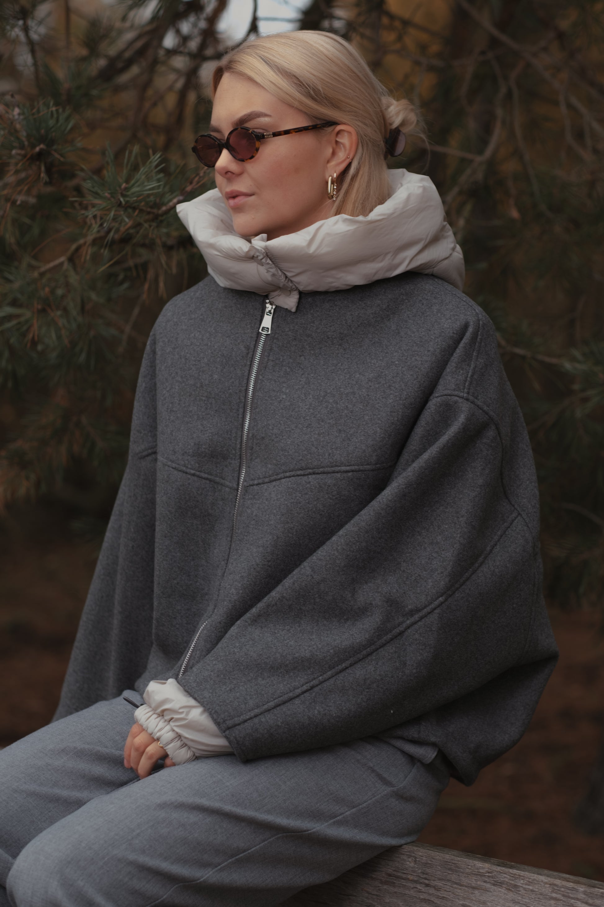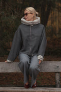 De Jas Aya in grijs is een moderne, sportieve jas met een trendy twist. Het oversized model heeft een stoere rits en verstelbare koorden in de taille voor een speels effect. De olijfgroene details aan de kraag en mouwen geven de jas een verrassend contrast en maken hem extra stijlvol. Perfect voor frisse dagen waarop je er warm én fashionable uit wilt zien.