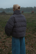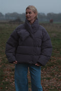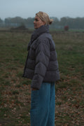 De Jas Noble omarmt comfort en stijl in één tijdloos ontwerp. De grijs kleur straalt rust en verfijning uit, terwijl de gewatteerde stof zorgt voor een luxueus volume en aangename warmte. De opvallende, kruiselings vallende kraag geeft de jas een elegante, moderne twist. Perfect voor koude dagen waarop je er moeiteloos chic uit wilt zien