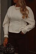 De Top Noor is een elegante top die moeiteloos vrouwelijkheid en verfijning uitstraalt. Het subtiel getailleerde model met lange, licht bloezende mouwen creëert een sierlijk silhouet, terwijl de verticale lijnen en naden voor een flatterend effect zorgen. De striksluiting achterin voegt een speels detail toe en geeft je de mogelijkheid de pasvorm naar wens aan te passen.